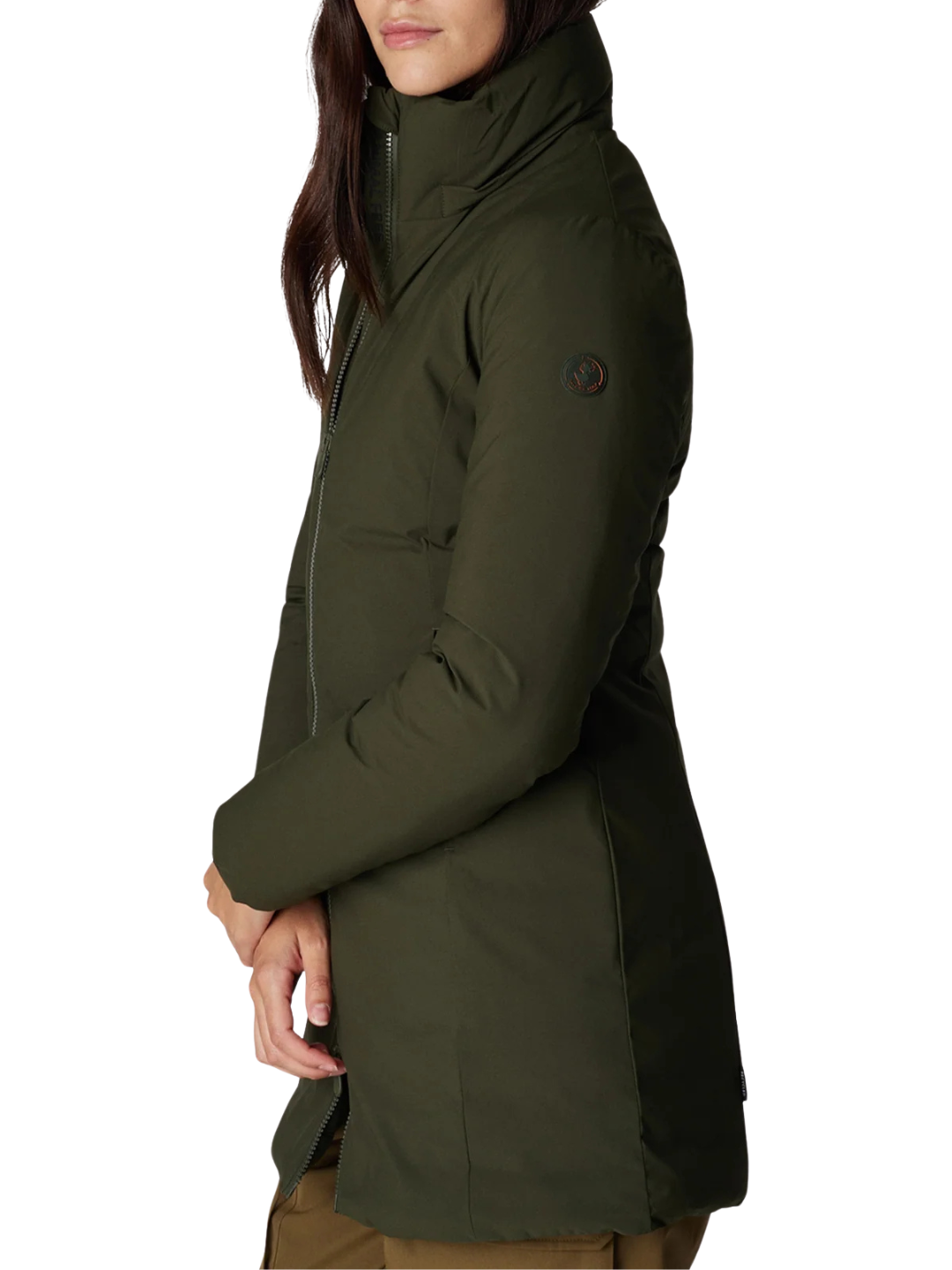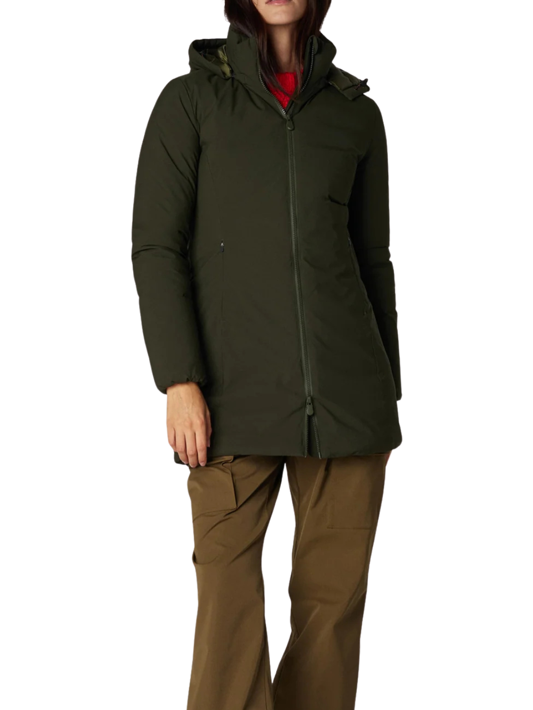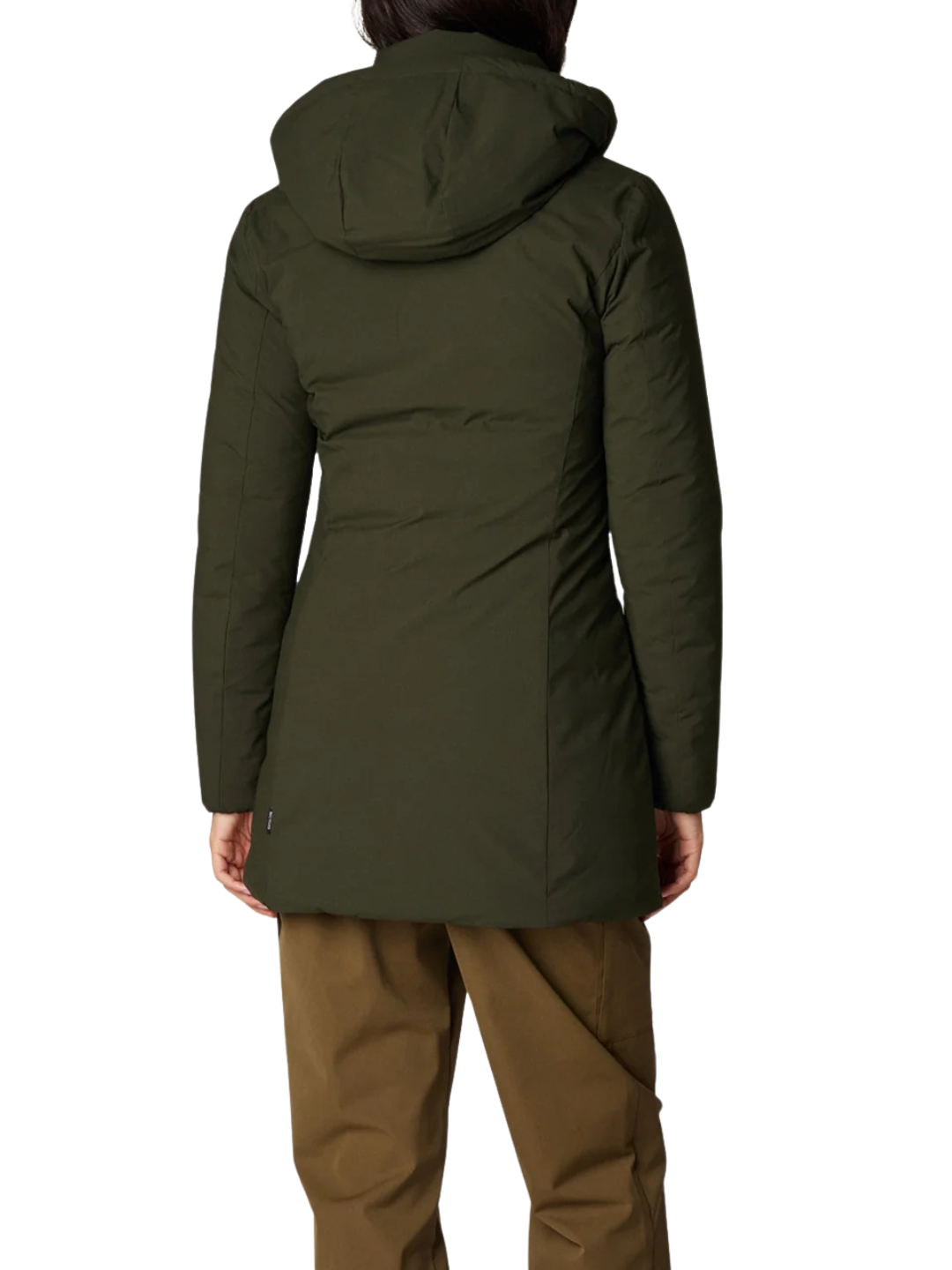 Il parka donna modello Rachel sfida la pioggia e il freddo con tessuti riciclati e imbottitura animal free in Recycled Plumtech®. Il capo ha cappuccio rimovibile e regolabile, zip centrale water-resistant e tasche zippate. Segni particolari? I tiretti personalizzati e il logo tono su tono incollato a caldo sulla manica.