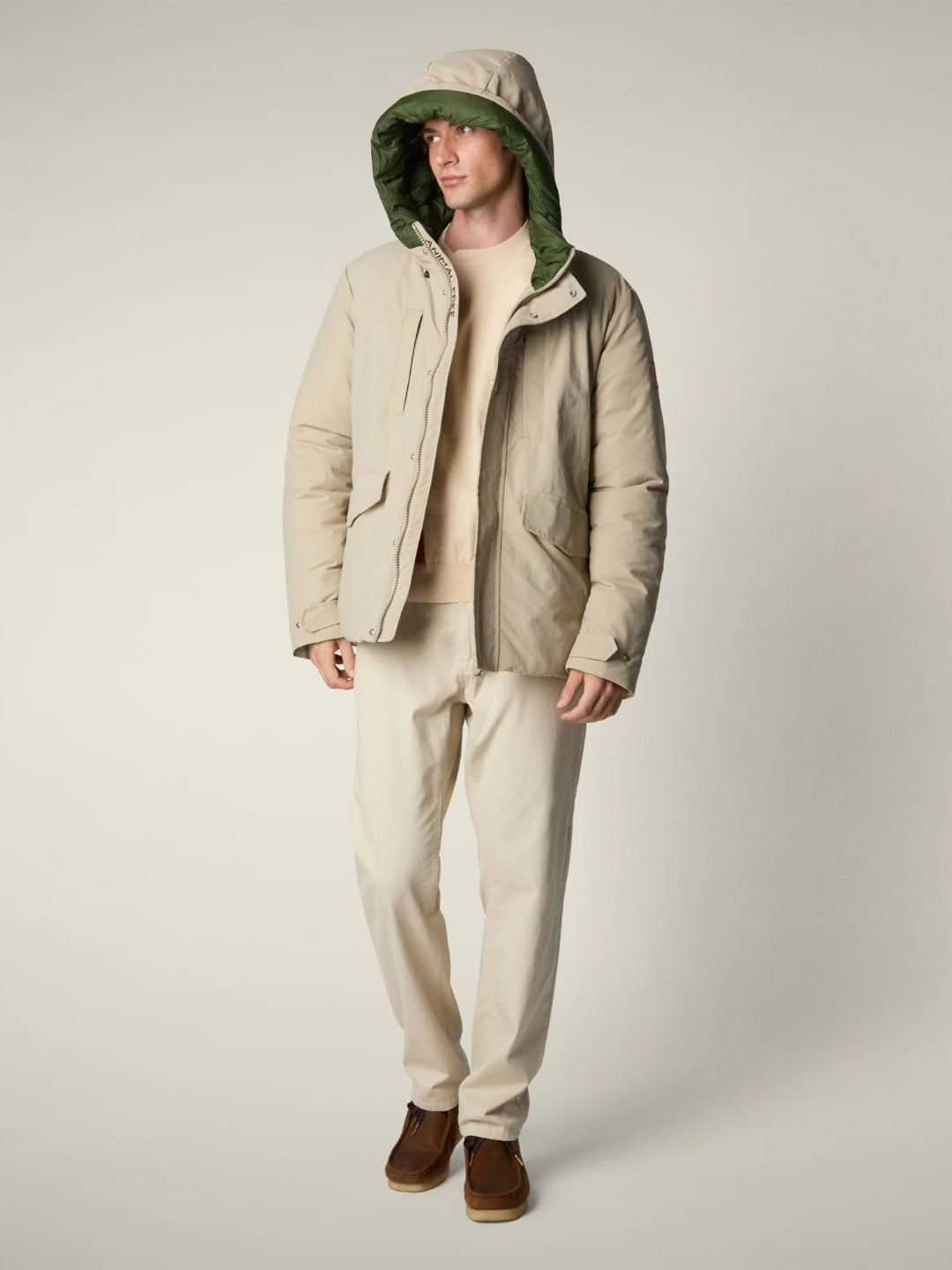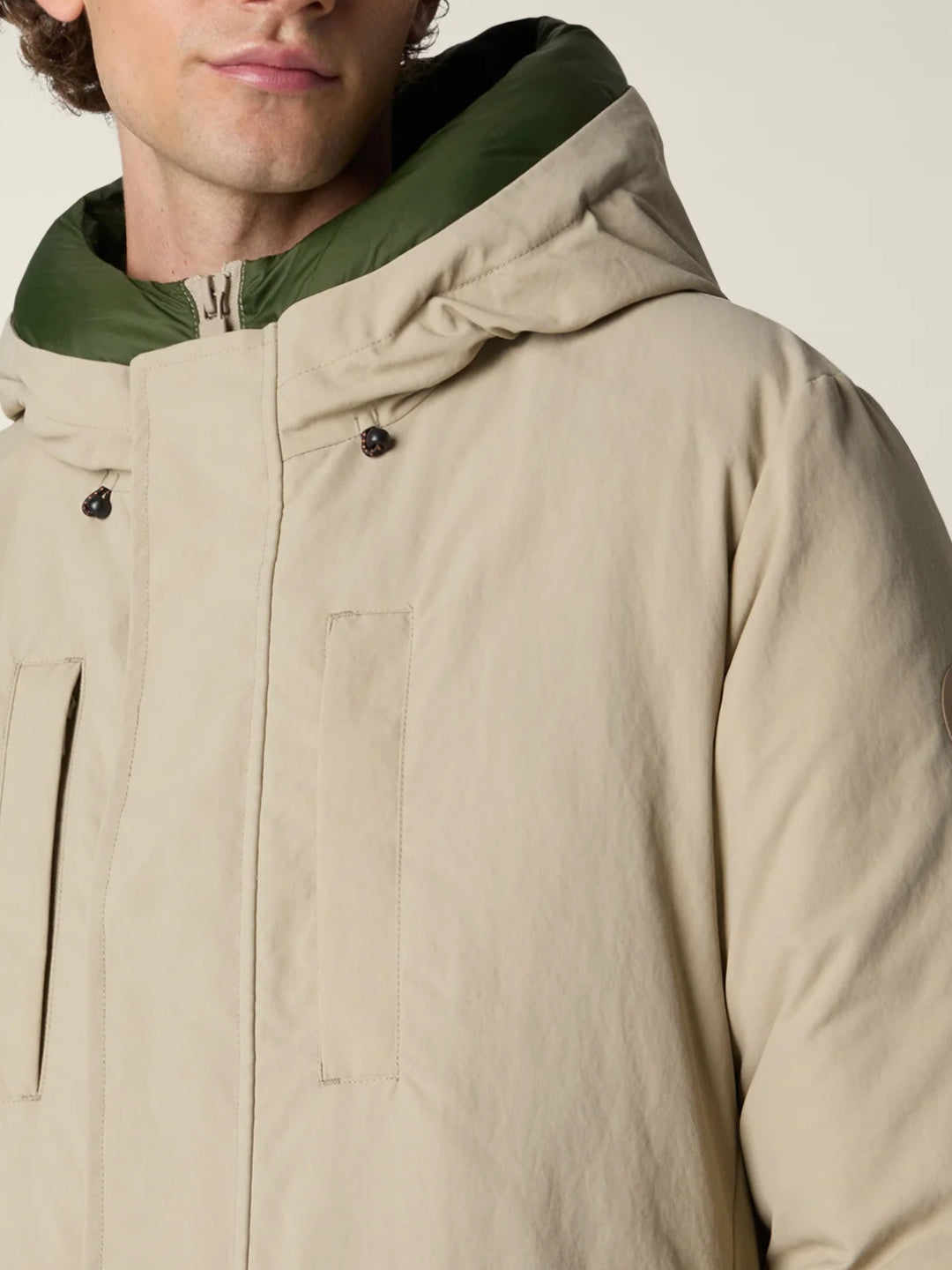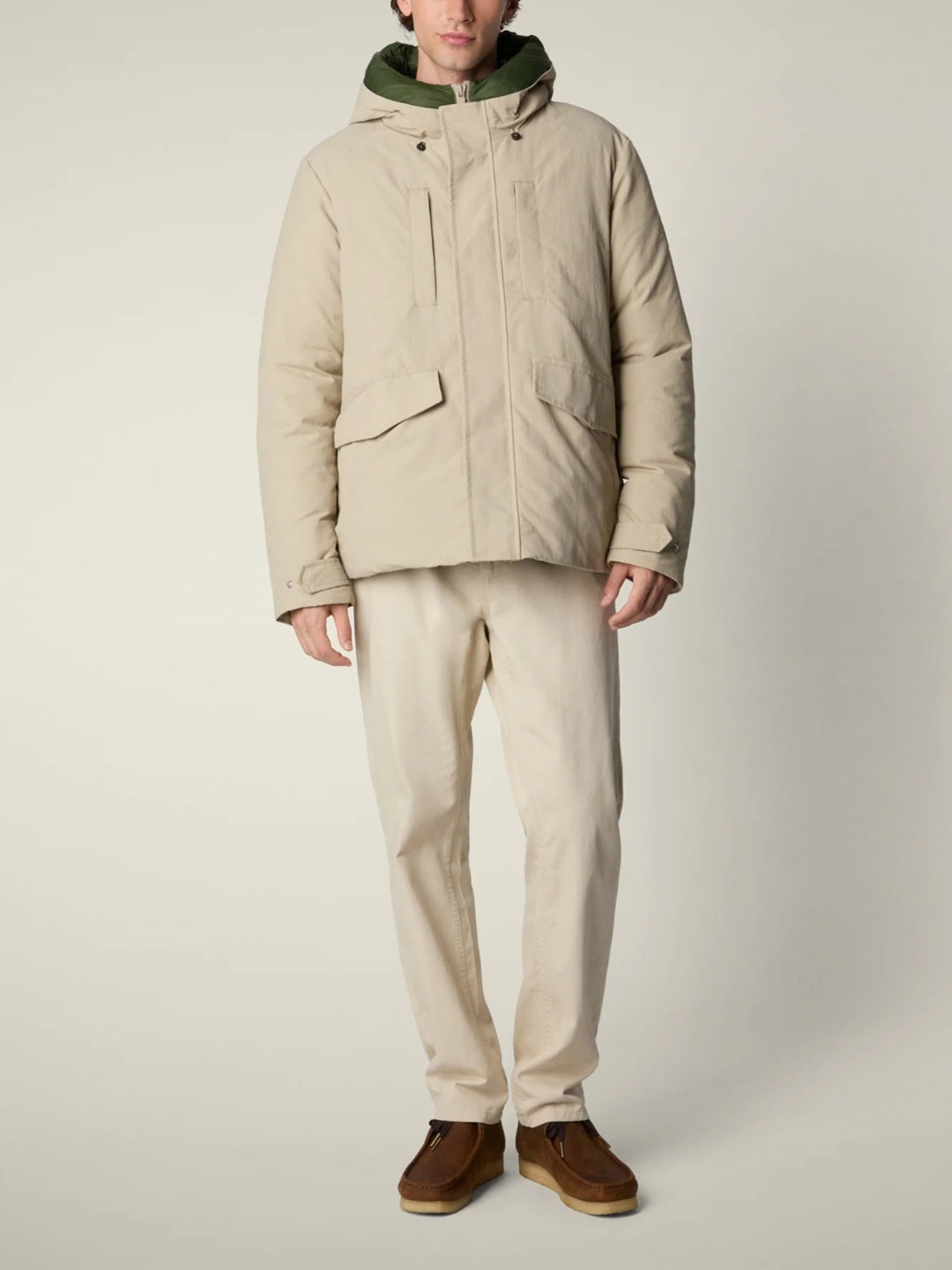 Giubbotto con Cappuccio Enzo Stone Beige + Pine Green