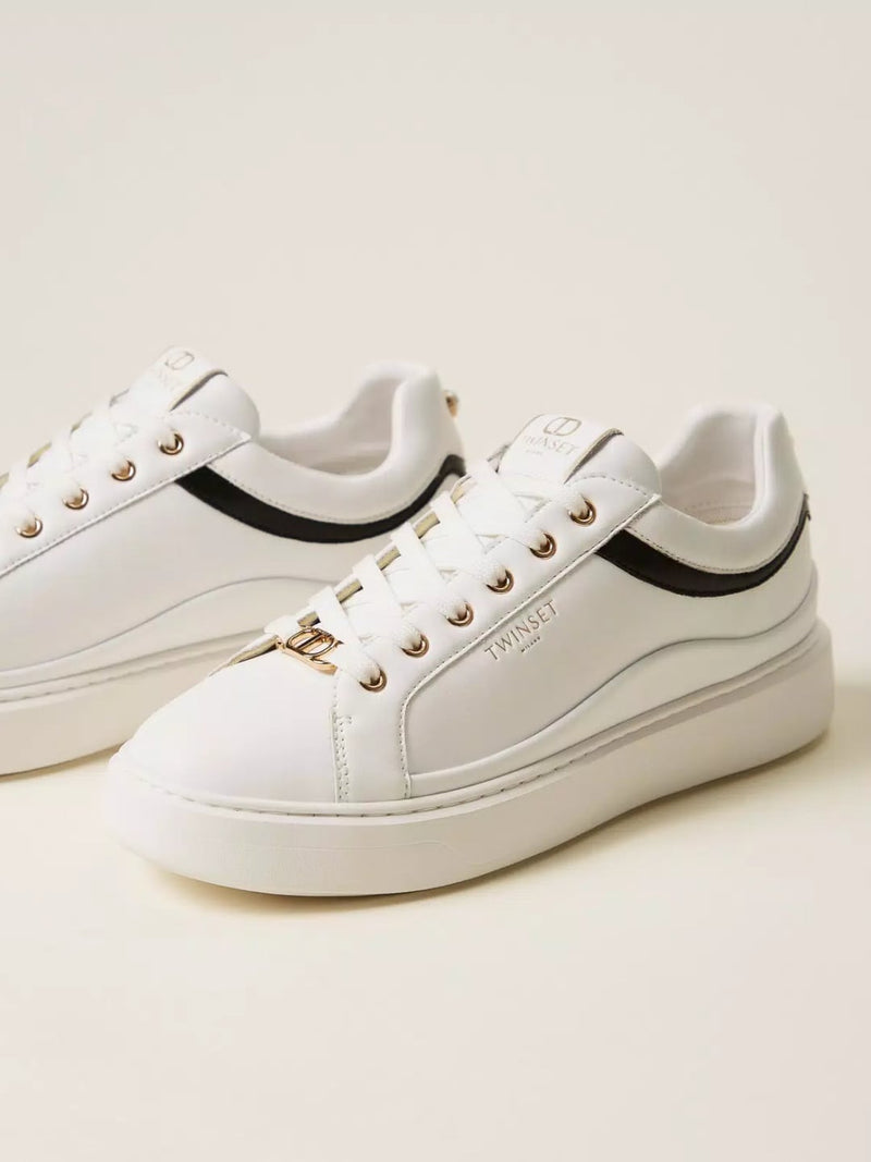 Twinset Sneakers in pelle con logo Bianco Ottico Nero