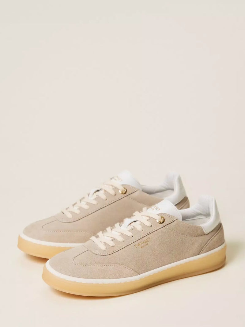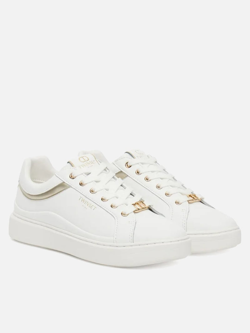 Twinset Sneakers in pelle con logo Bianco Ottico Oro