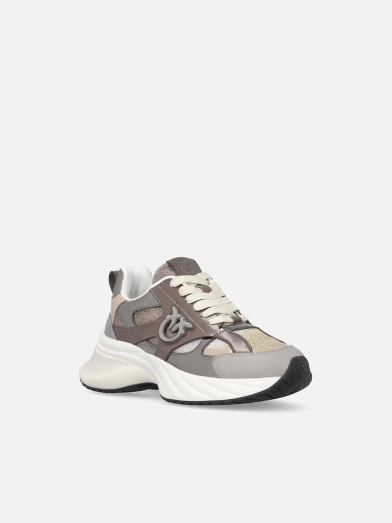 Pinko Sneakers ARIEL 15 con glitter e logo Love Birds Tabacco