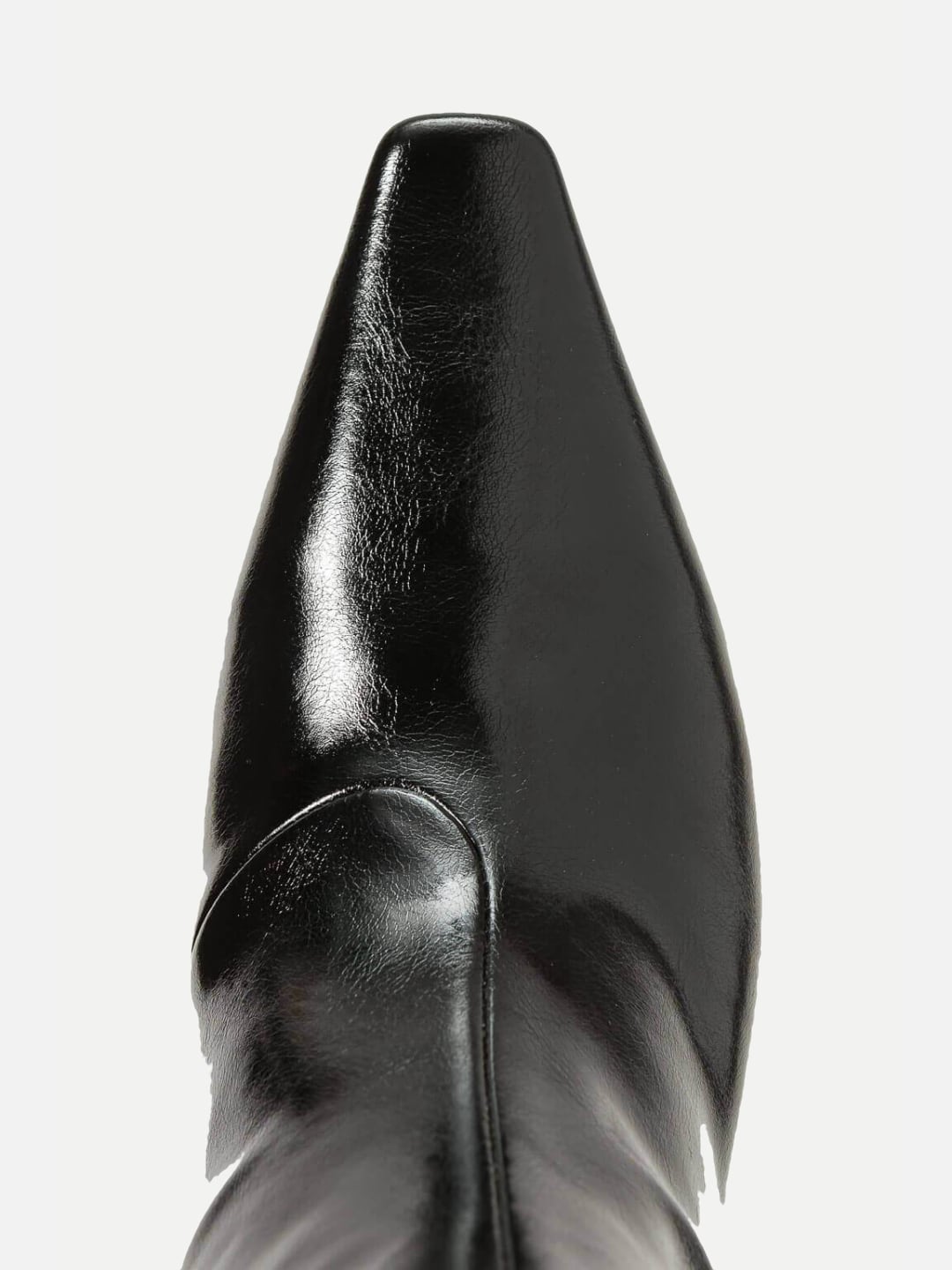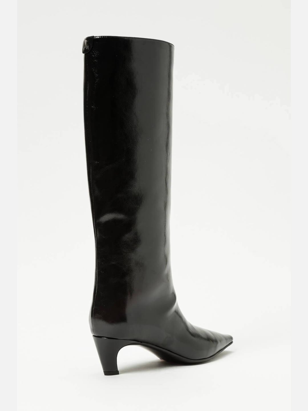 Elegante stivale in in similpelle verniciata e tacco sottile.