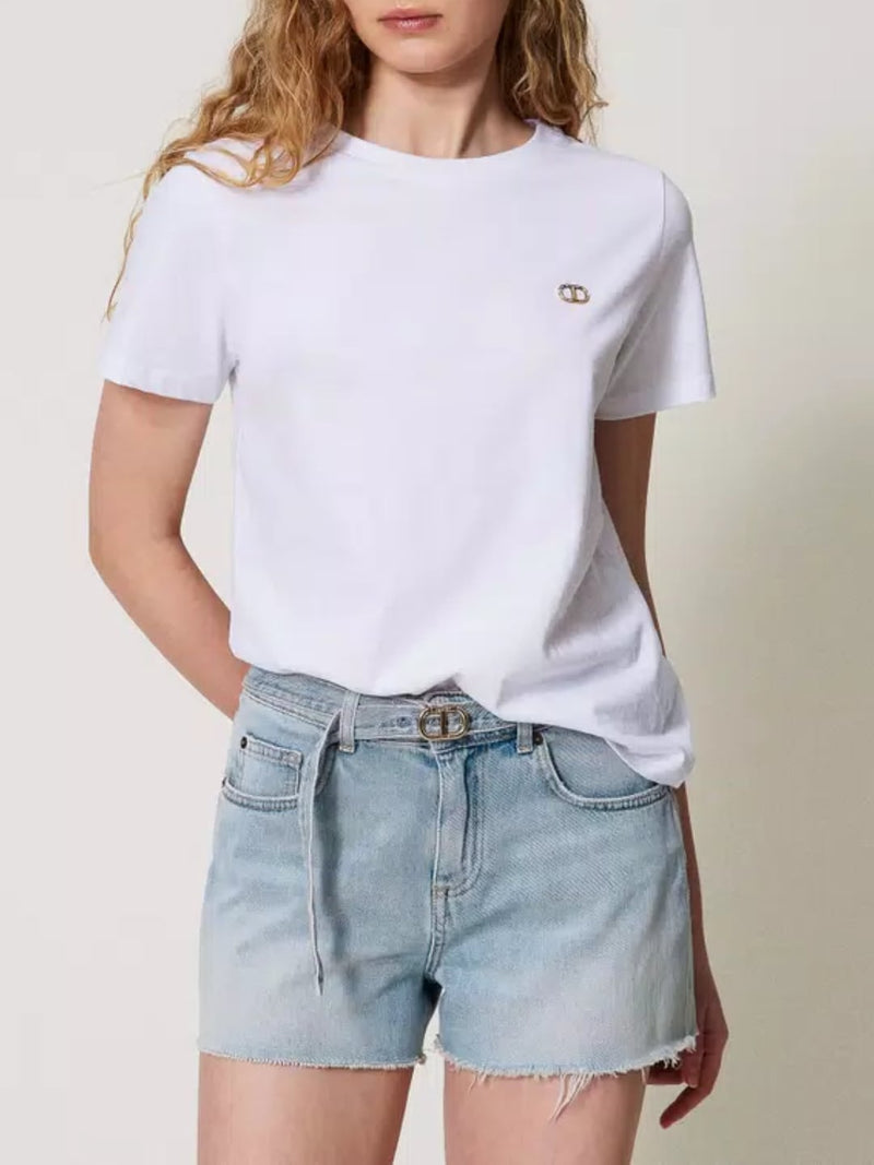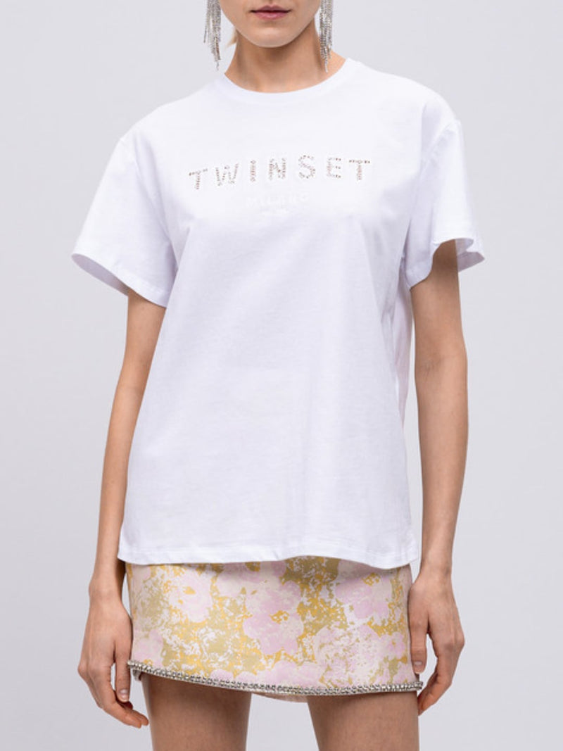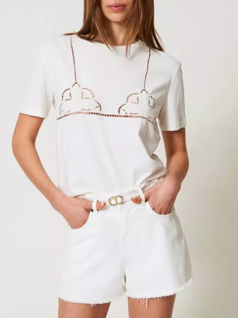 Twinset T-shirt con ricamo traforato Bianco Neve