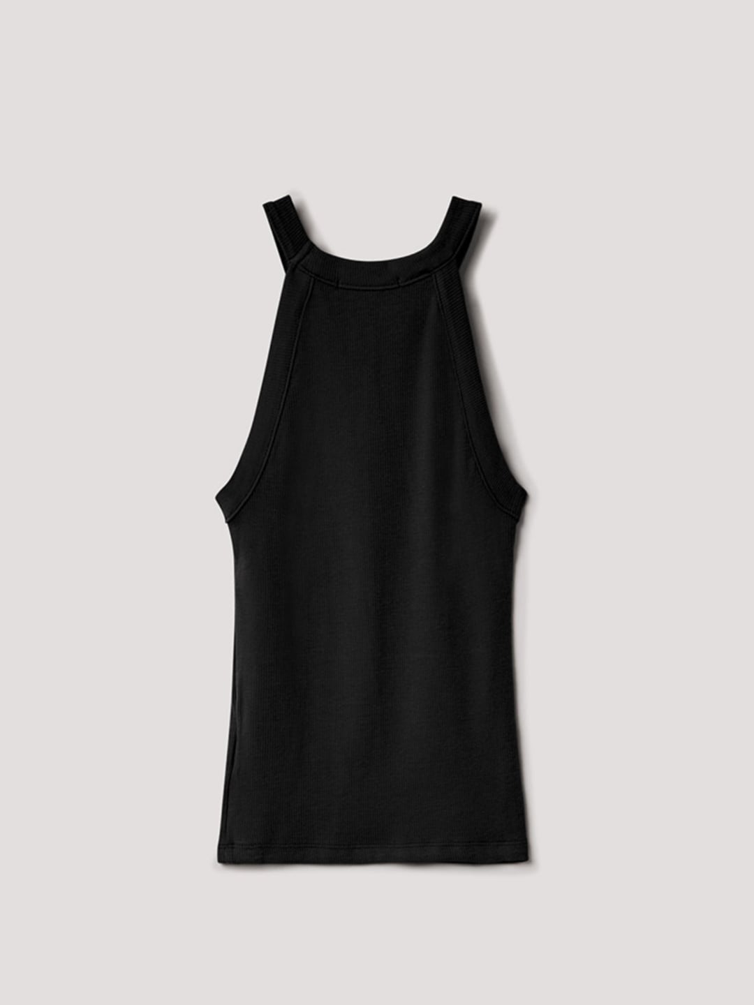 Top In Costina Scollo All'Americana Con Stampa Siliconata e logo lettering Hinnominate sul fianco.