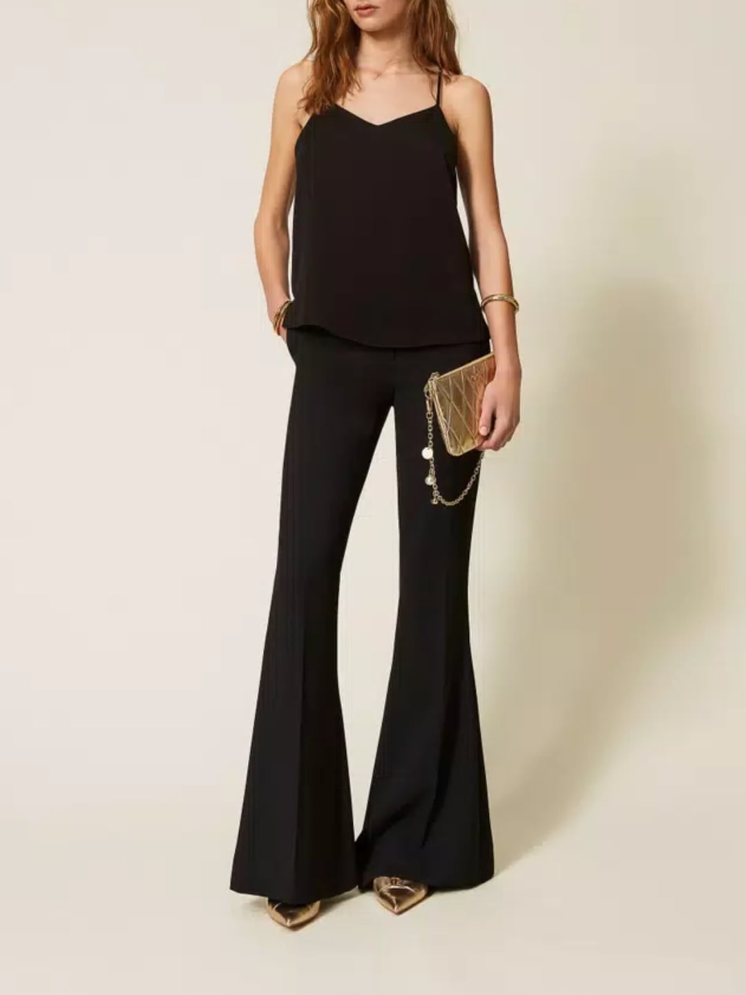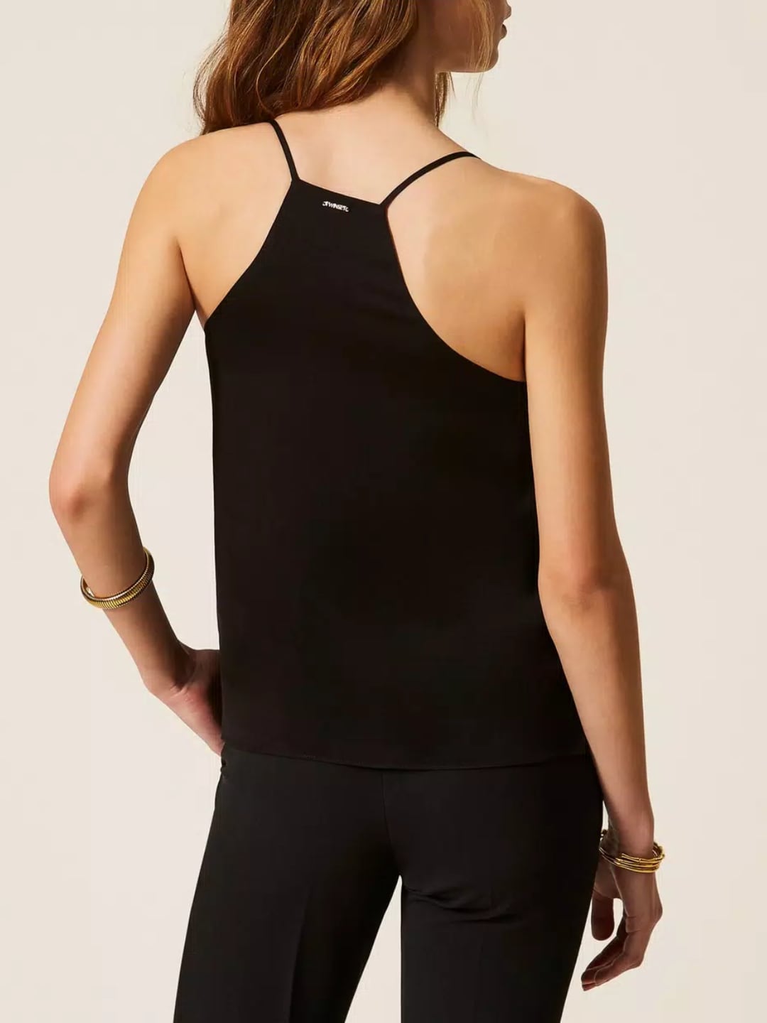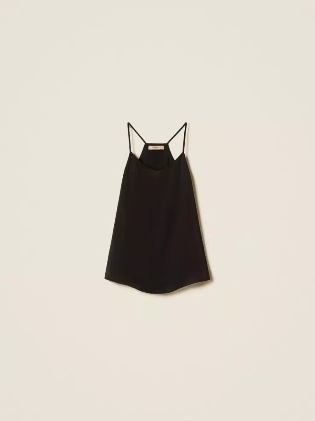 Top in raso di viscosa con scollatura a V, spalline sottili, linea morbida.