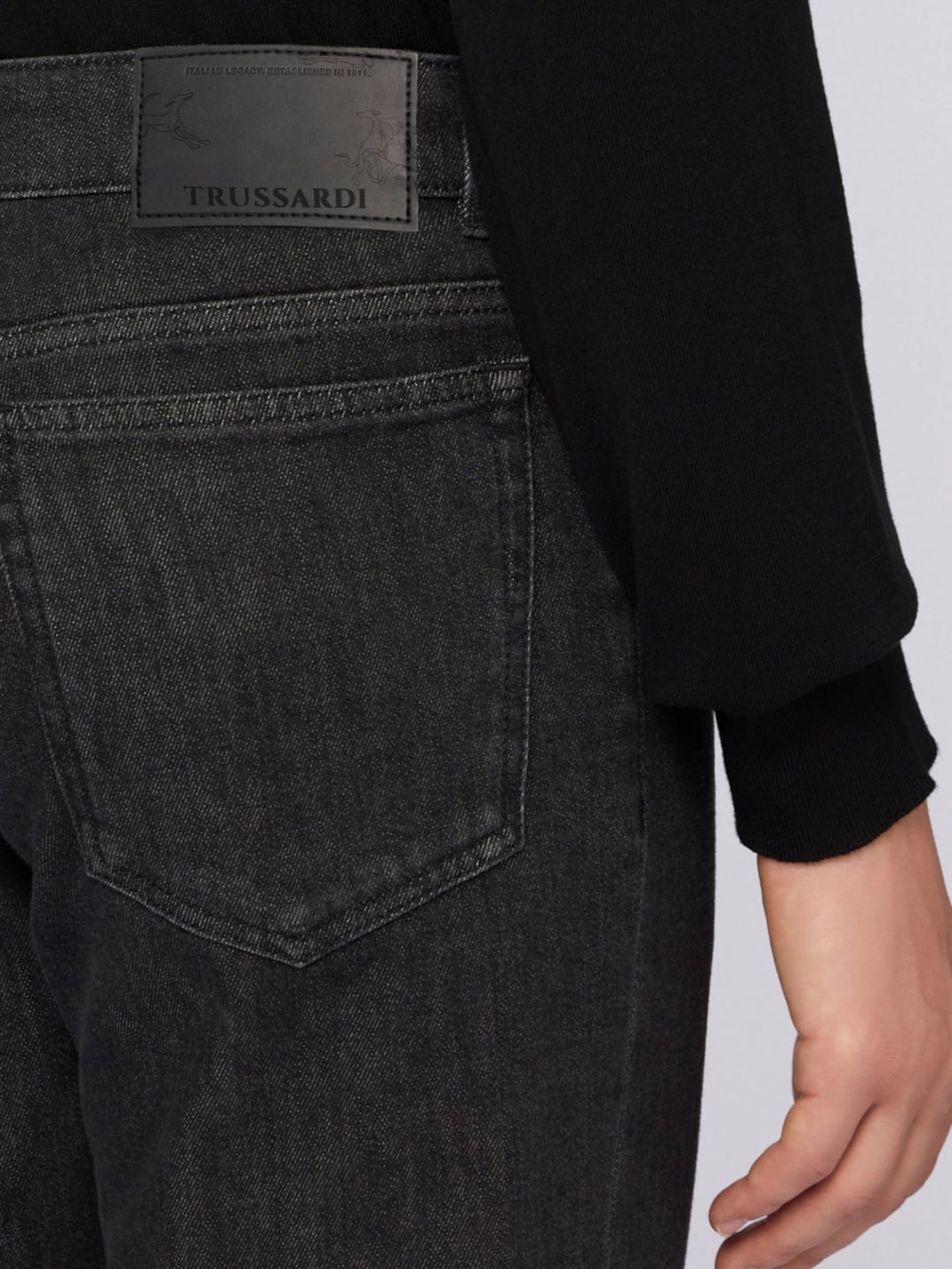 Il jeans The Iconic Regular 380 rappresenta l'essenza del denim Trussardi, unendo tradizione e modernità. La vestibilità regular garantisce comfort senza rinunciare allo stile, mentre dettagli come la salpa in pelle e il quinto taschino ricamato aggiungono un tocco di eleganza. Ideale per un look casual-chic, si abbina facilmente a una polo per un outfit versatile da giorno o a una camicia per occasioni più formali. Un capo senza tempo che si adatta al dinamismo della vita quotidiana, incarnando i valori di funzionalità e stile del brand. Il denim evolve con il tempo e i lavaggi: può adattarsi leggermente nella forma e acquisire sfumature uniche, raccontando la storia di chi lo indossa.