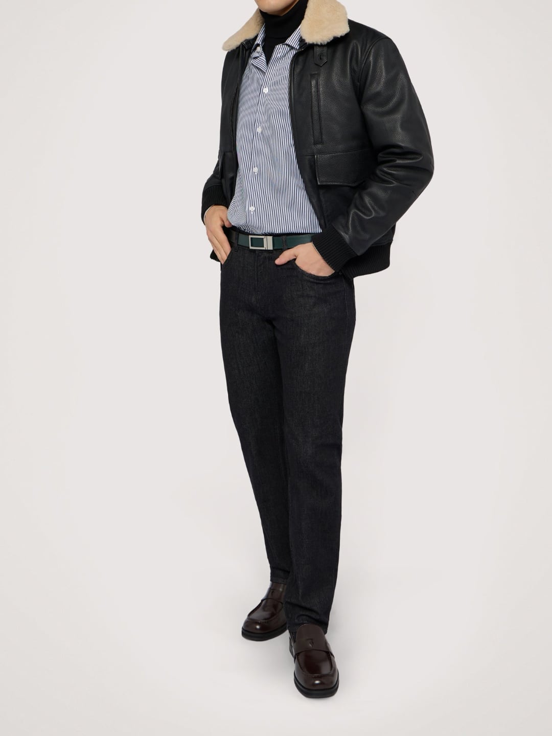 - Denim nero stonewashed con salpa in pelle