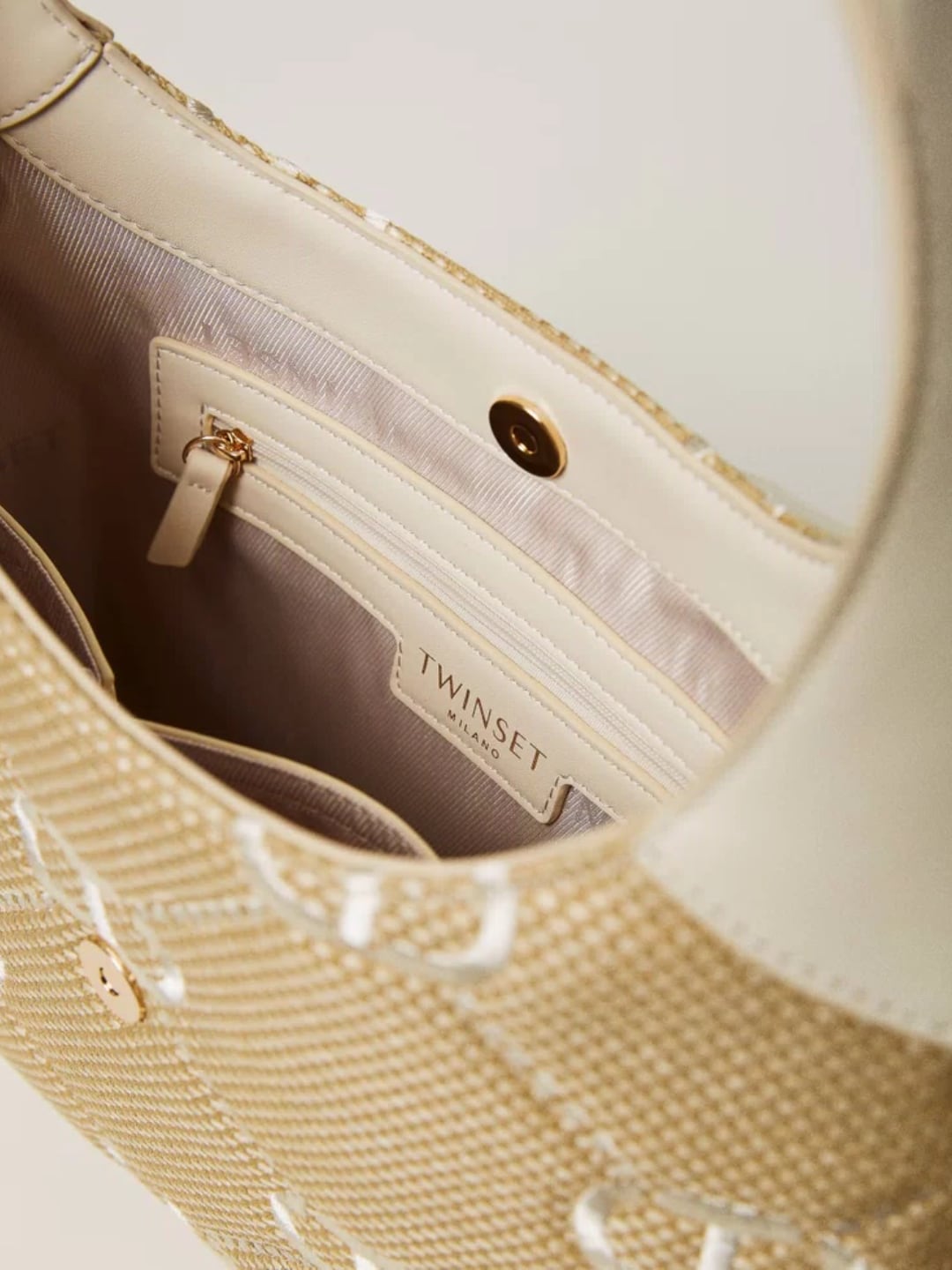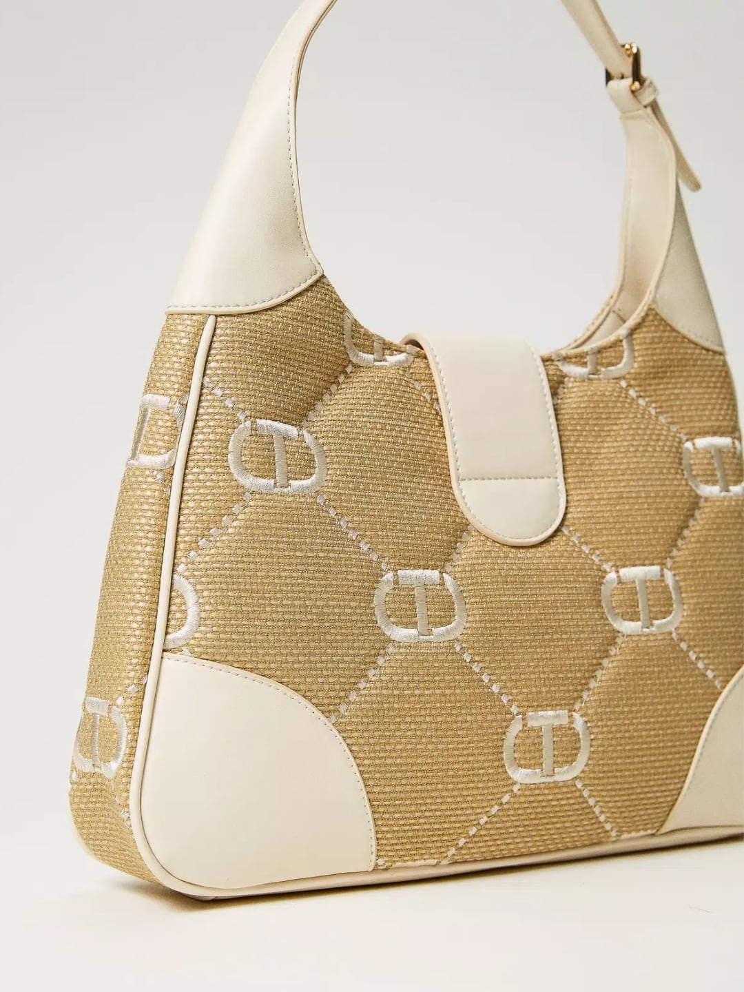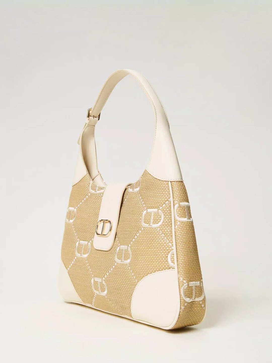 Borsa hobo 'Palermo' effetto rafia jacquard con ricamo logo Oval T all over, manico a spalla, chiusura con cinturino e magnete. Estetica attuale e logomania rendono la borsa hobo 'Palermo' un modello perfetto per completare i look di stagione. È in materiale effetto rafia jacquard con ricamo logo Oval T all over con rifiniture a contrasto effetto pelle di vitello liscio in tinta con il ricamo, il manico a spalla, la chiusura con cinturino logato e magnete. Perfetta in look on e off duty.i