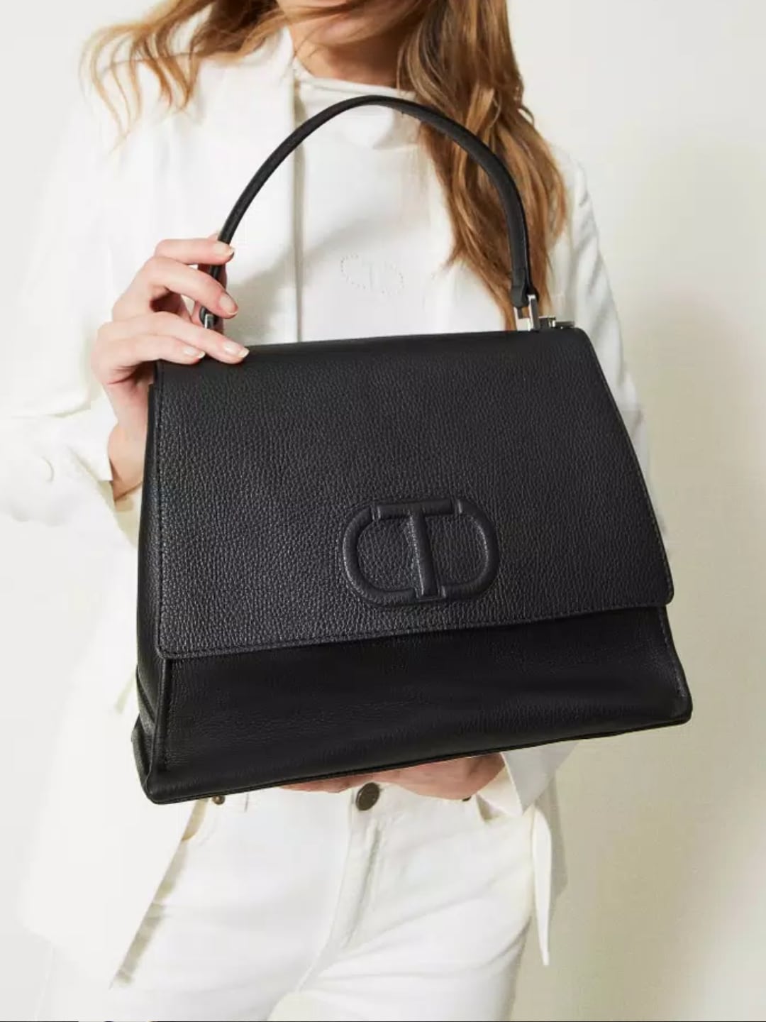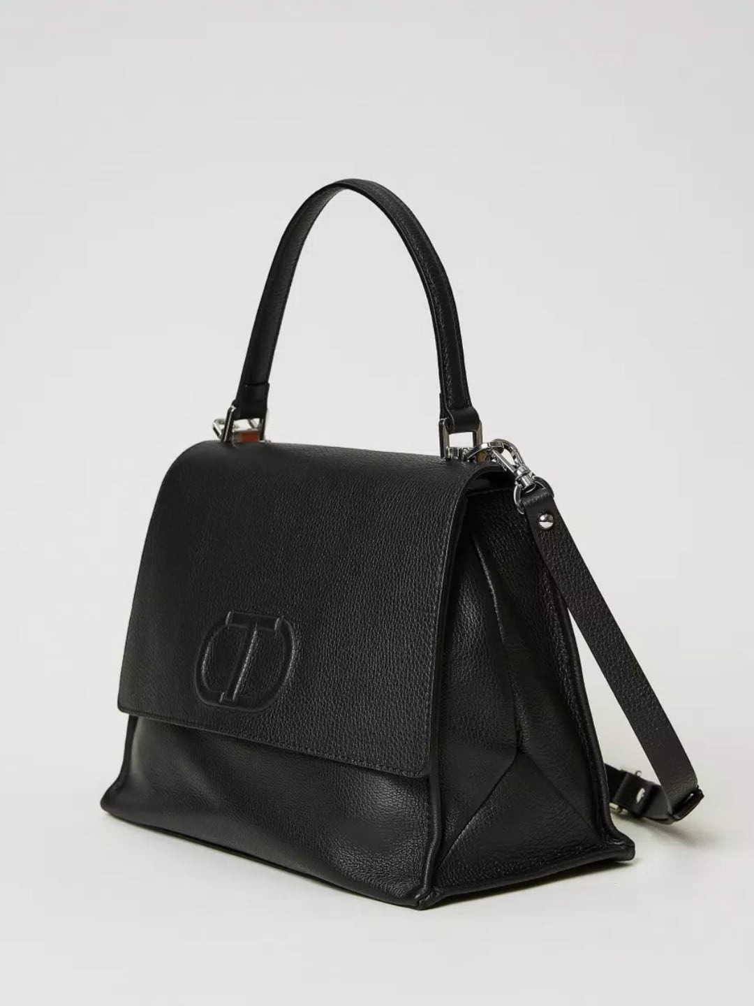 Borsa top handle ‘Joy’ in pelle di vitello con patta e magnete, logo Oval T in rilievo, tracolla rimovibile. Sfoggia la borsa a mano top handle ‘Joy’ made in Italy realizzata in pelle di vitello con grana stampa cervo, manico in testa, chiusura con patta e magnete, logo Oval T in rilievo, costruita con soffietto laterale che dona morbidezza. La puoi indossare anche cross-body grazie alla pratica tracolla rimovibile con moschettoni.