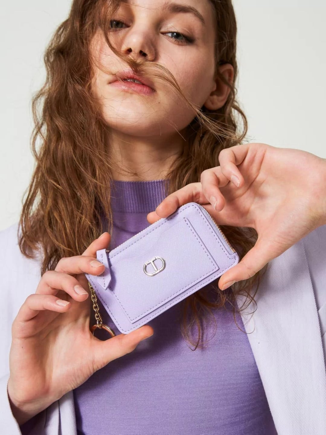 Portacarte con zip e anello portachiavi Viola Giacinto