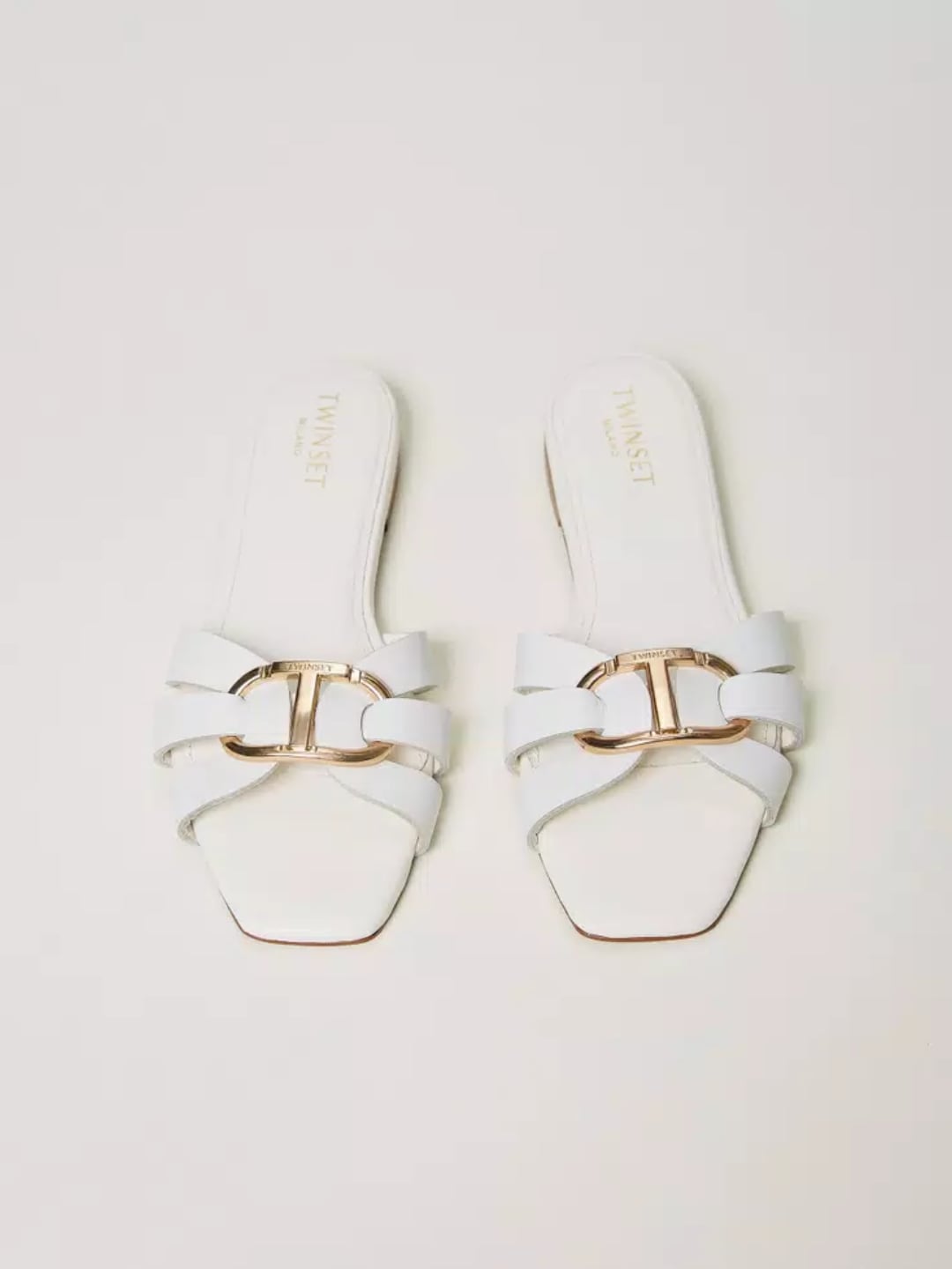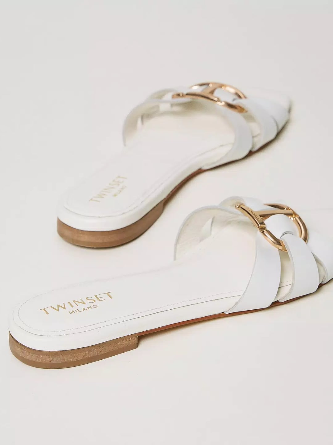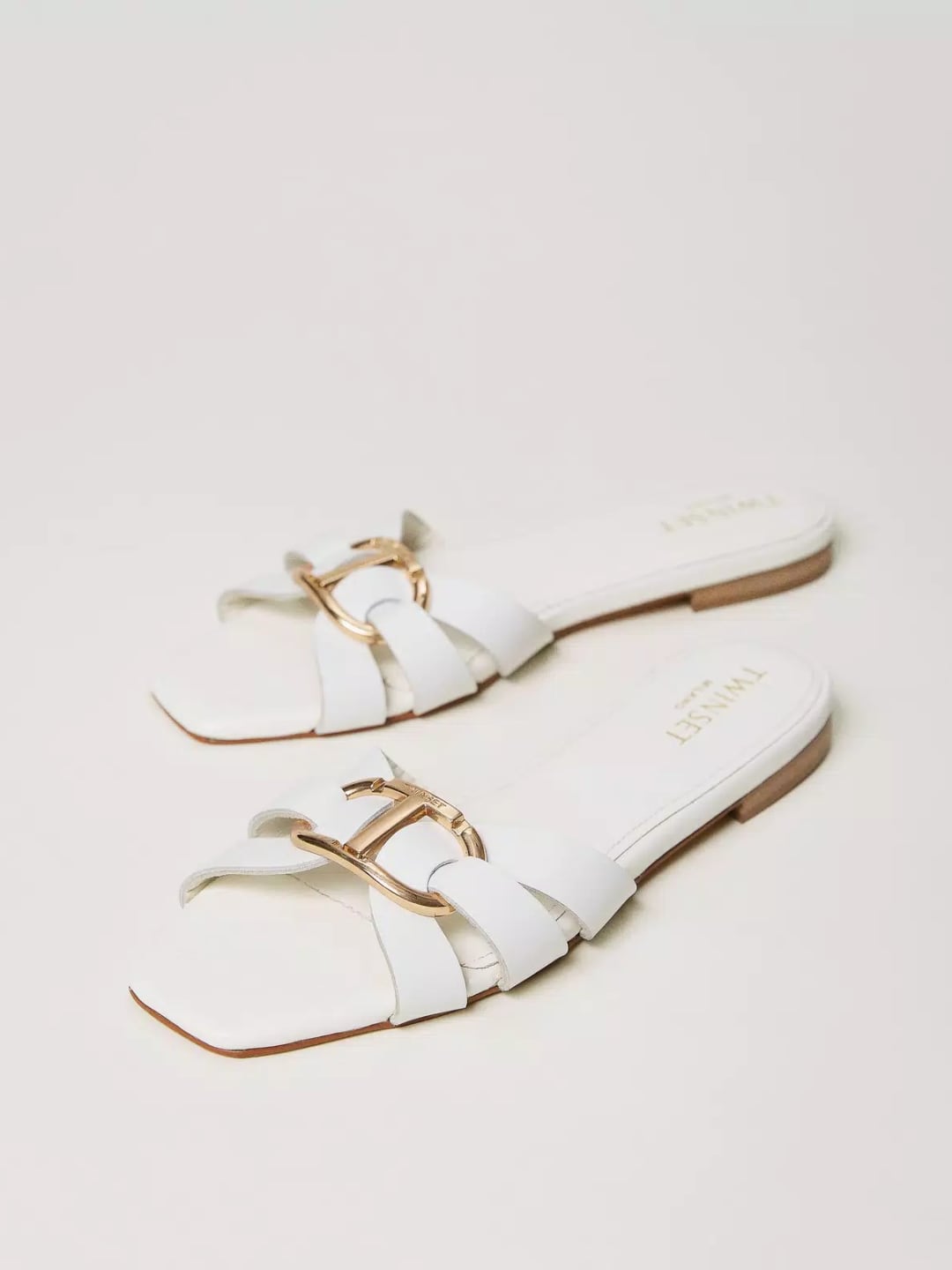 Sandali slide in pelle con Oval T Col. Bianco Ottico
