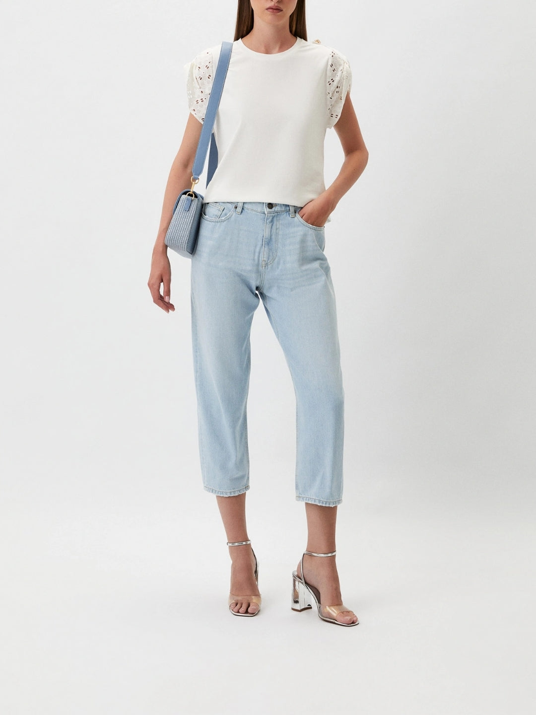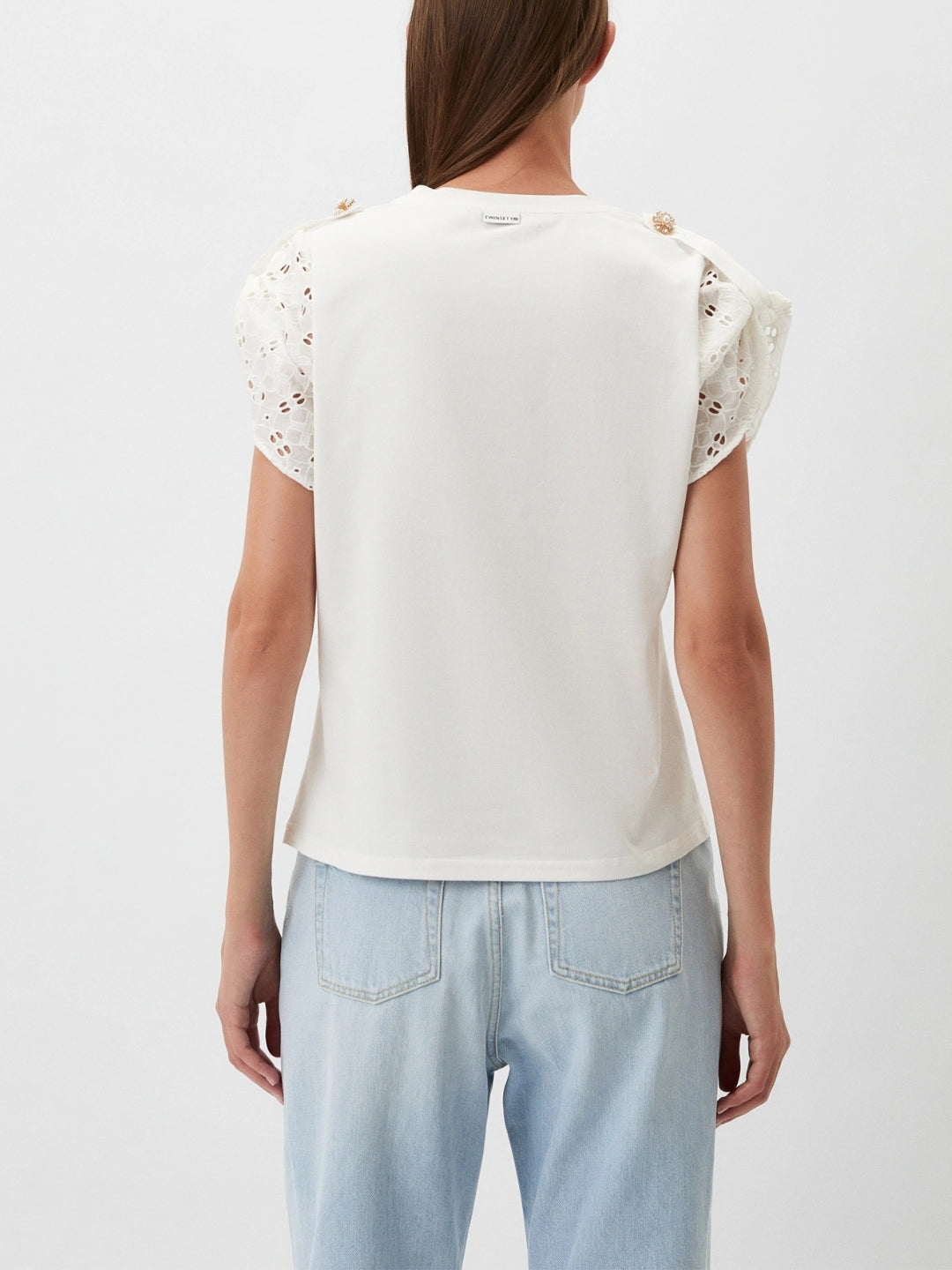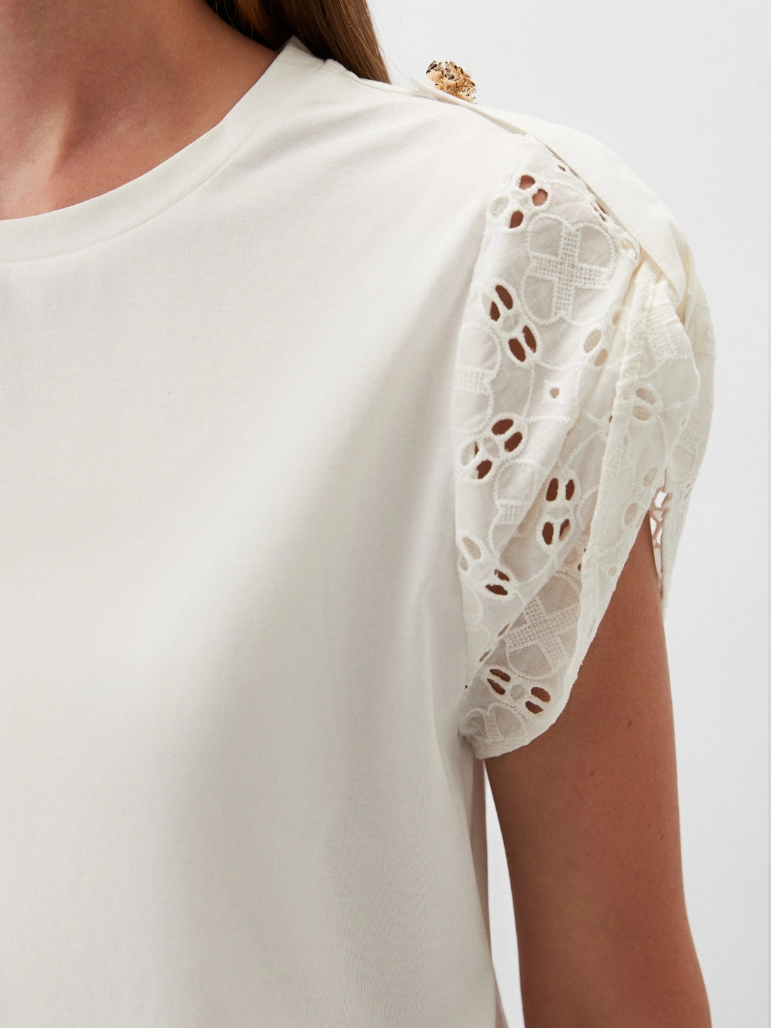 T-shirt con maniche in popeline sangallo Bianco