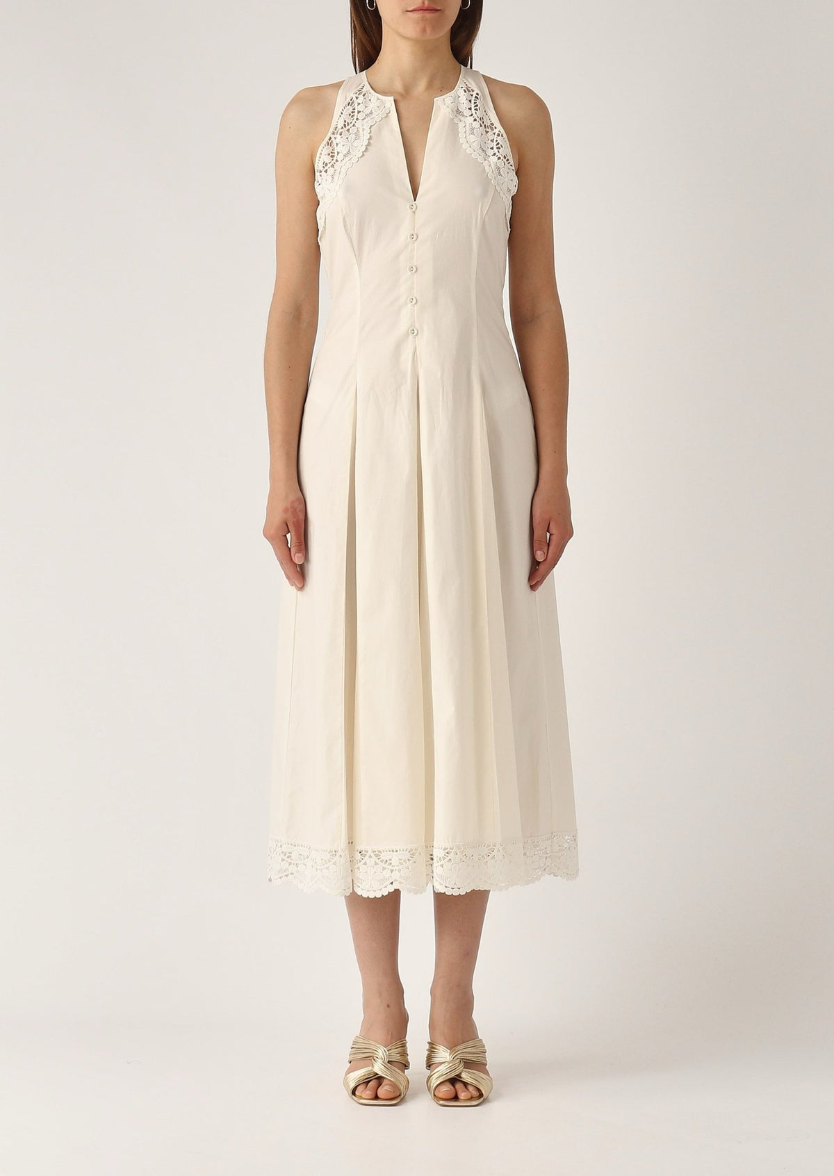 Romantico e femminile, l'abito Twinset in cotone stretch è la scelta perfetta per un look d'impatto.