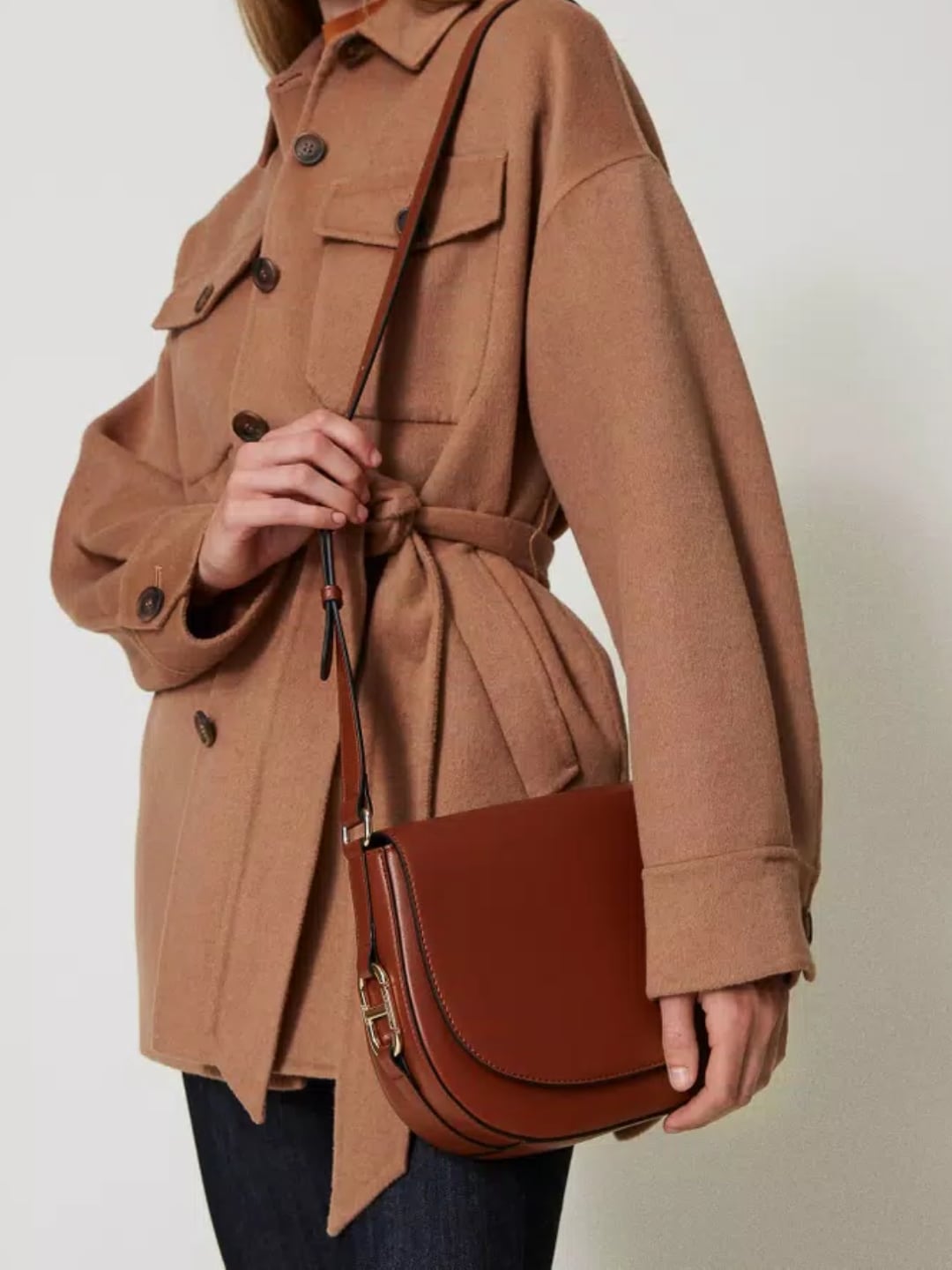 Twinset Borsa a tracolla con fibbia Oval T Cuoio