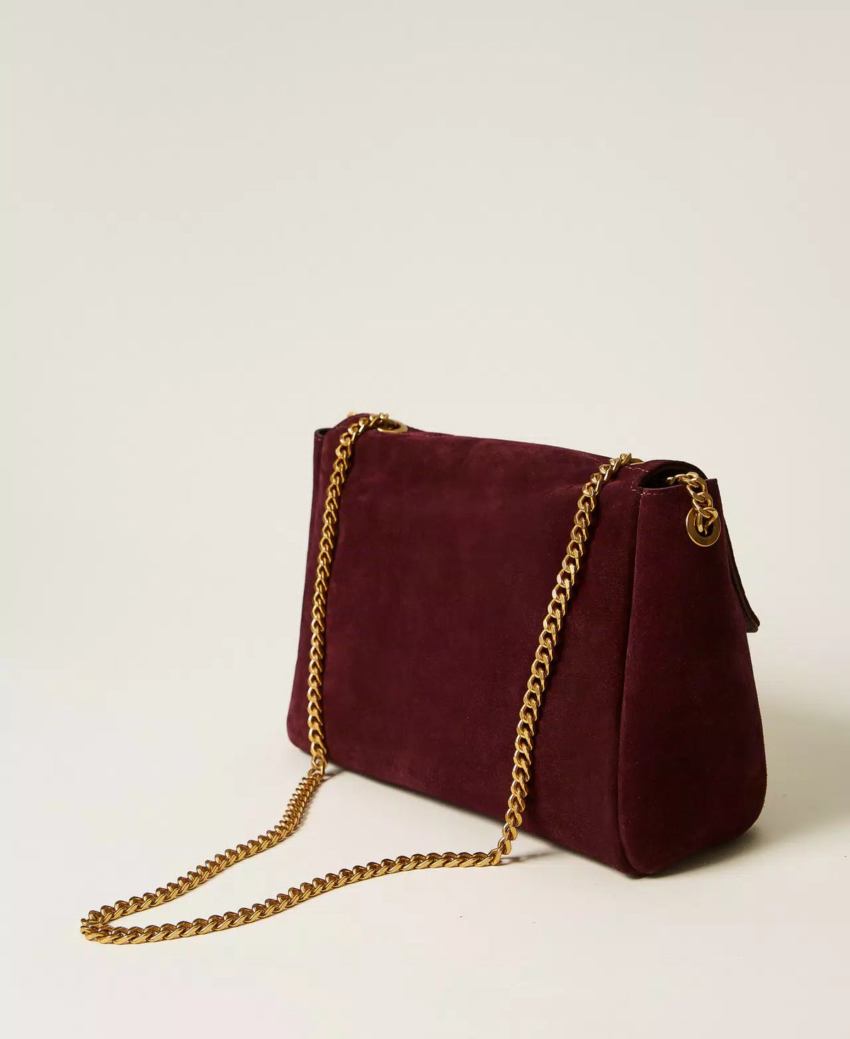 Borsa a tracolla 'Dreamy' in pelle reversibile. Da un lato è in pelle di crosta scamosciata con trattamenti che preservano il colore e l'aspetto della pelle, personalizzata da Oval T in metallo e dall'altro in vitello pieno fiore morbido con micrograna naturale e logo lettering stampato a caldo in carta oro. Ha chiusura con patta e magnete, tracolla in catena da indossare a spalla o cross-body, foderata.