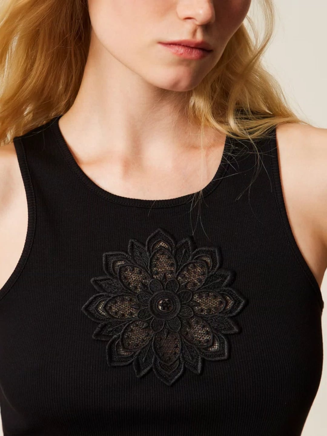 Twinset Canotta con ricamo floreale Nero