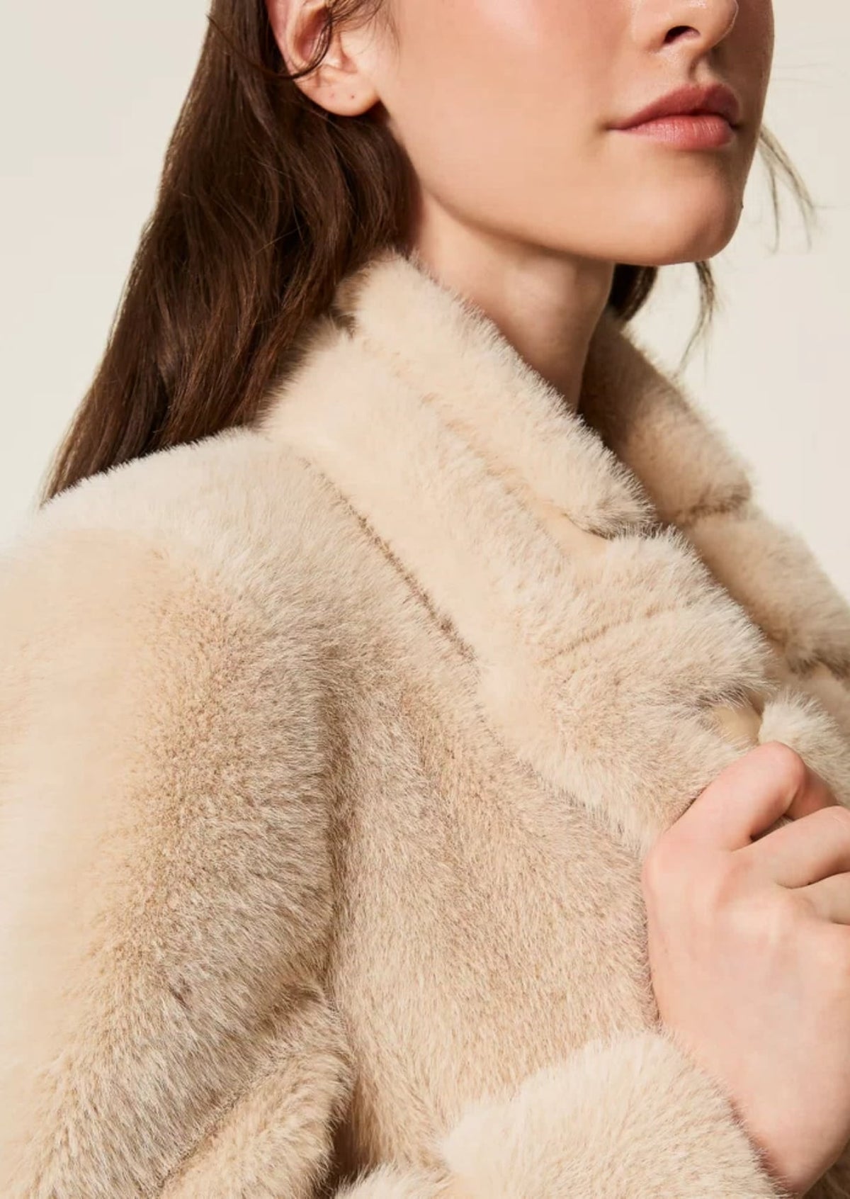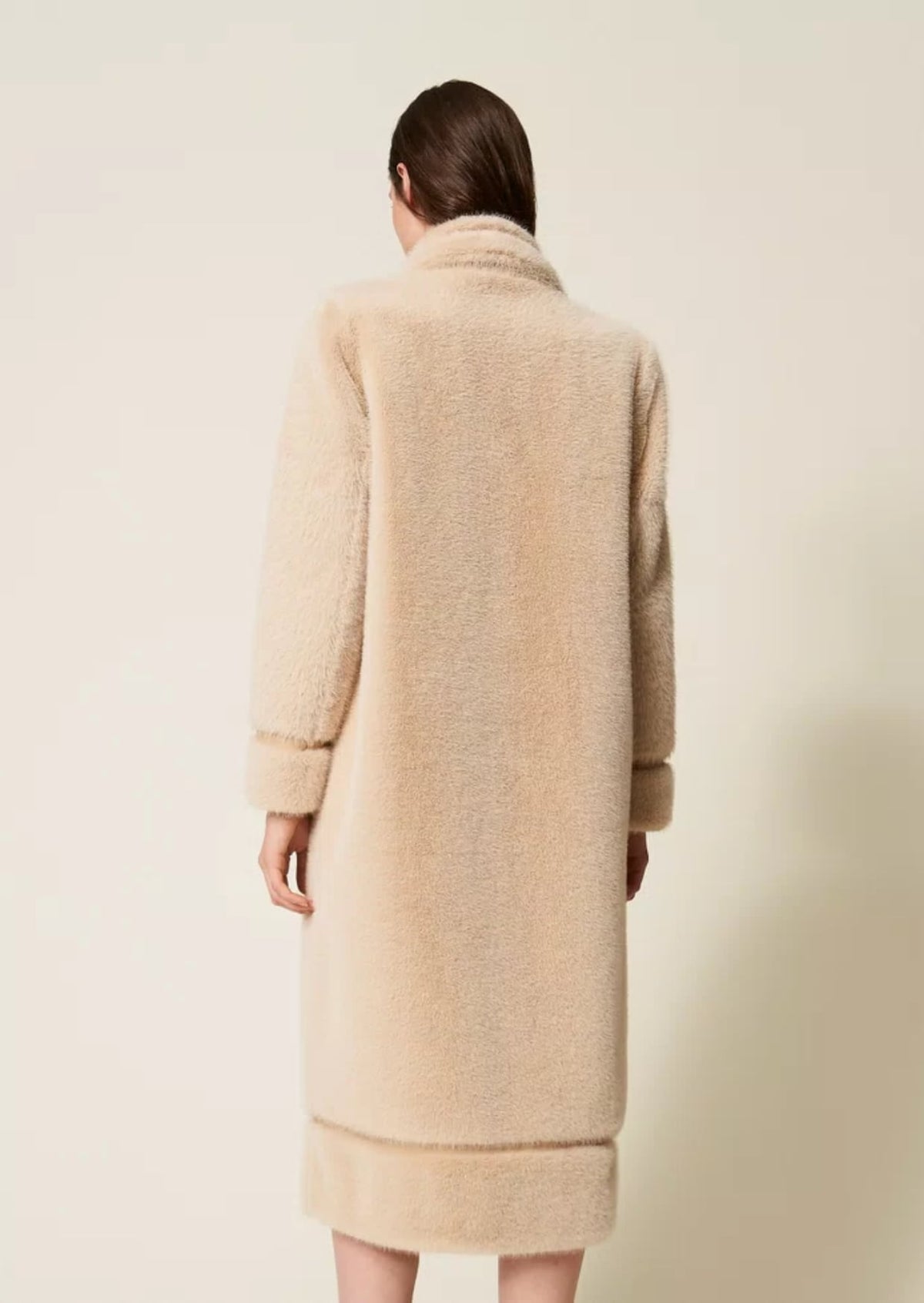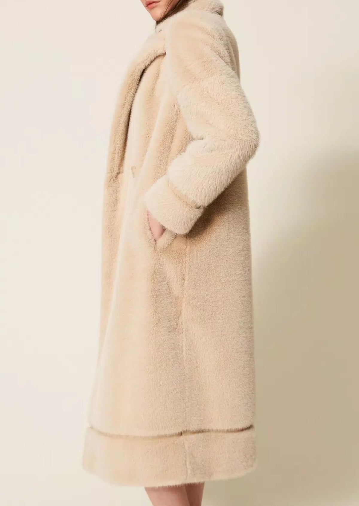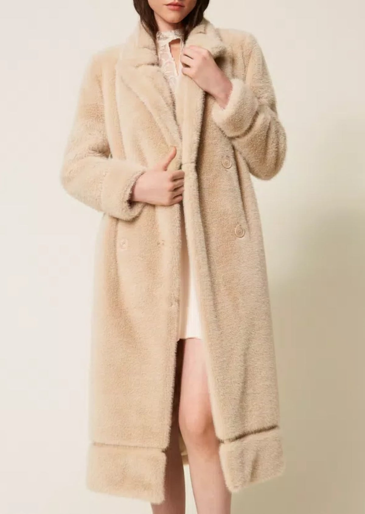 Twinset Cappotto doppiopetto in ecopelliccia Light Natural