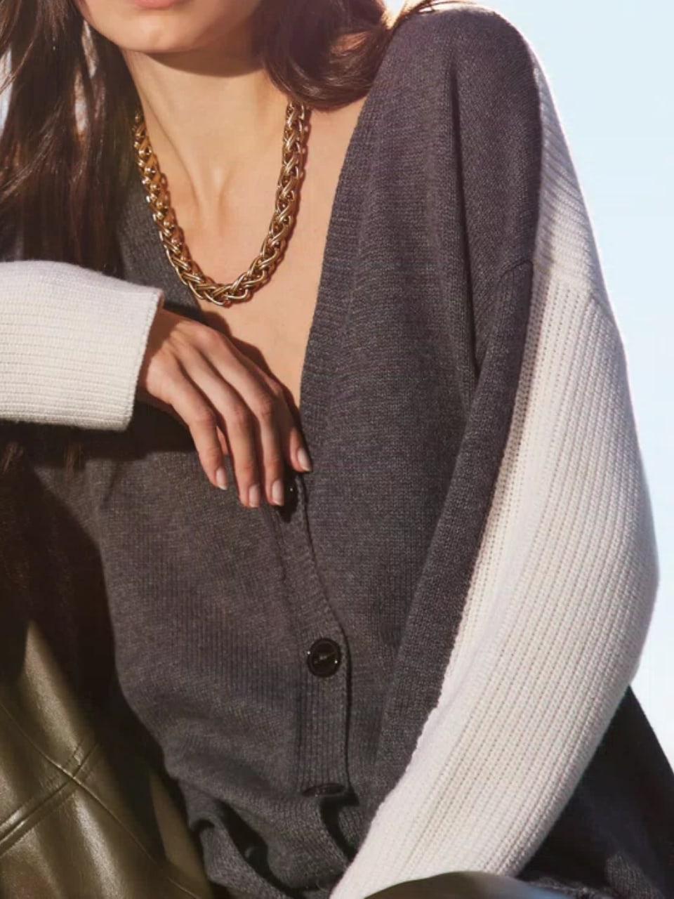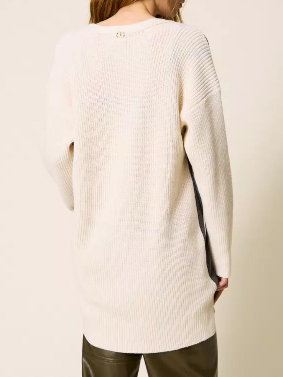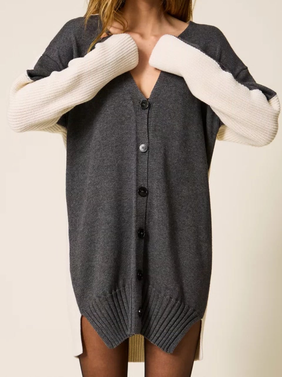 Twinset Cardigan lungo in misto lana Grigio Melange Bianco Neve