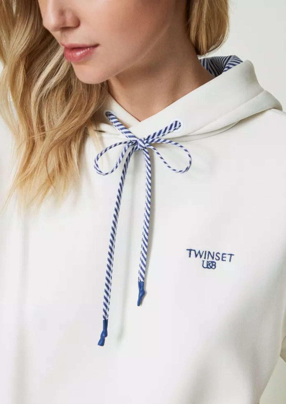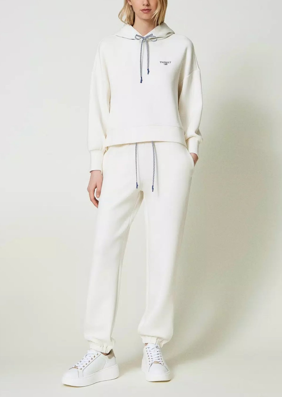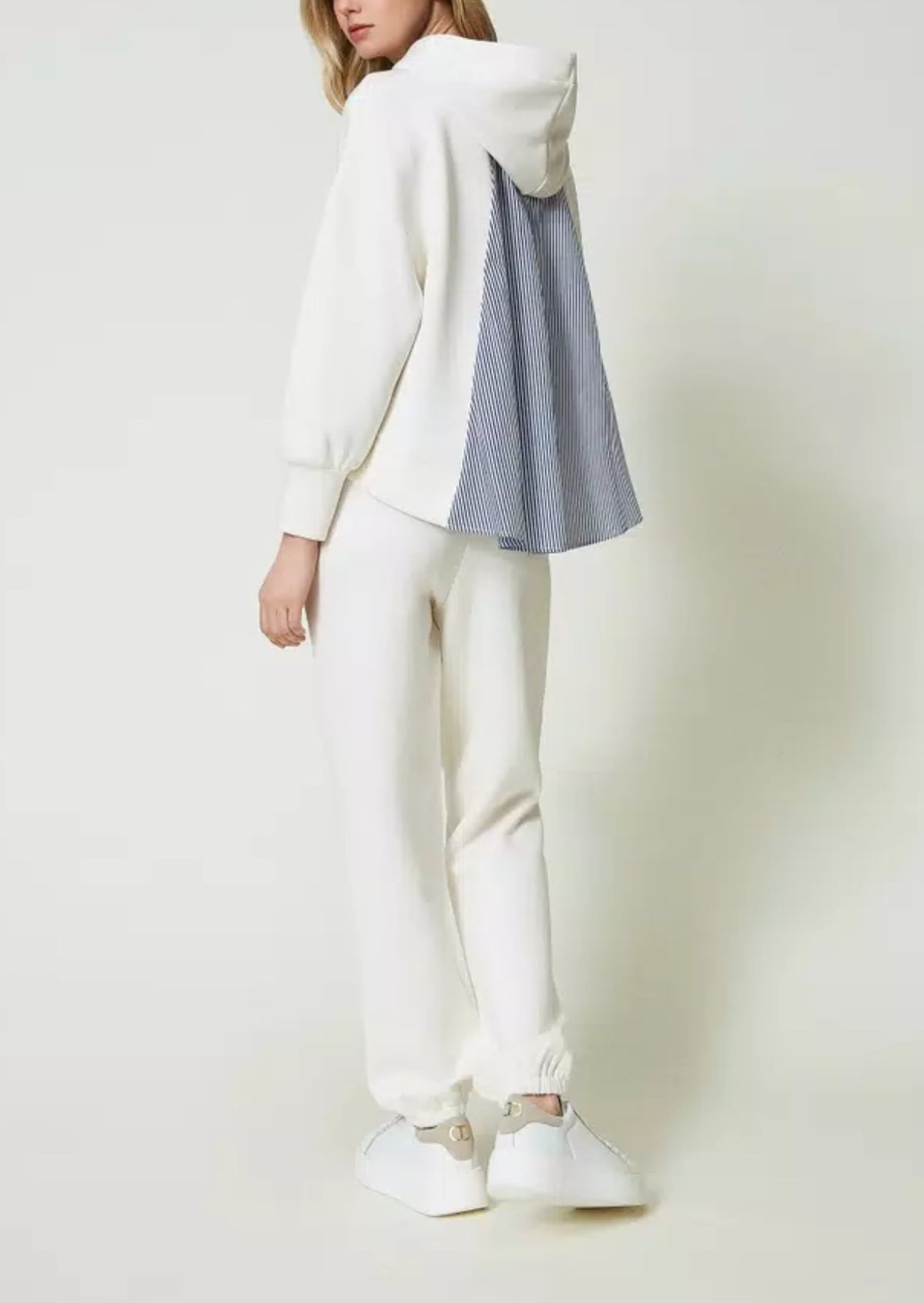 Twinset Completo Felpa e Joggers in Tessuto Scuba Bianco e Azzurro a righe