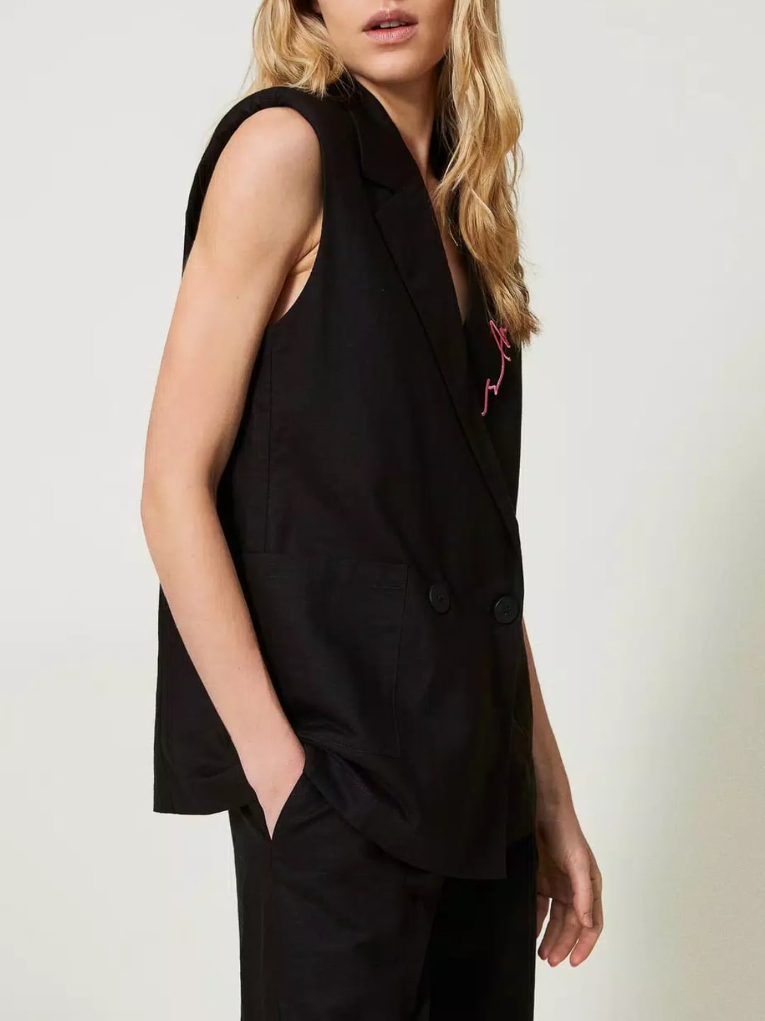 Twinset Gilet MYFO in misto lino ricamato Nero