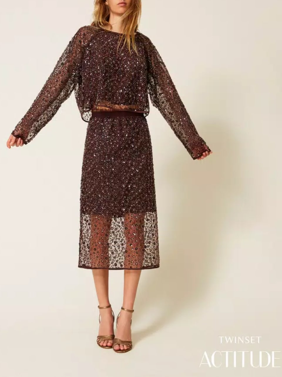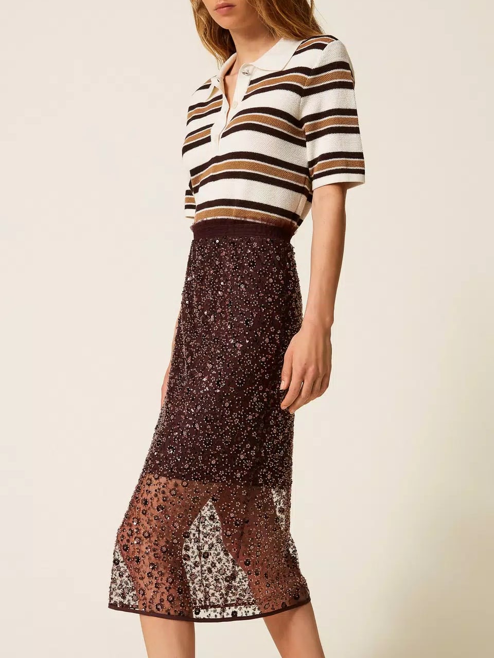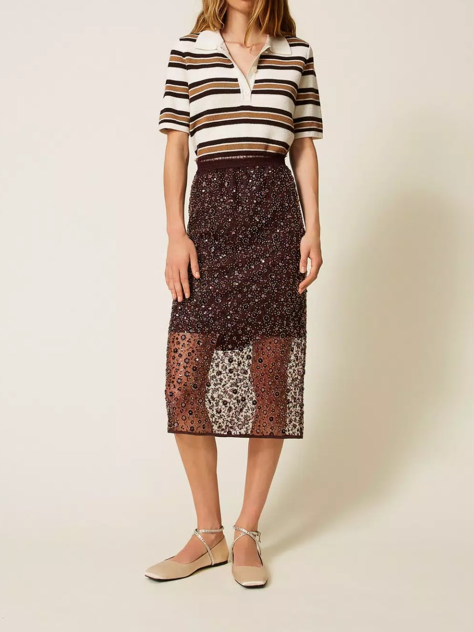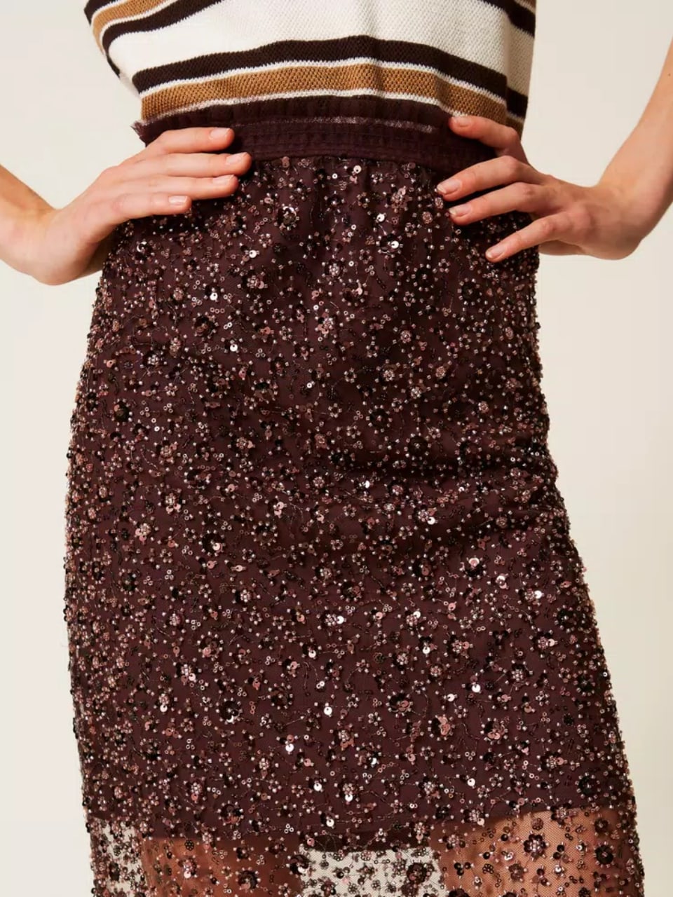 Twinset Gonna longuette in tulle con paillettes Hot Chocolate