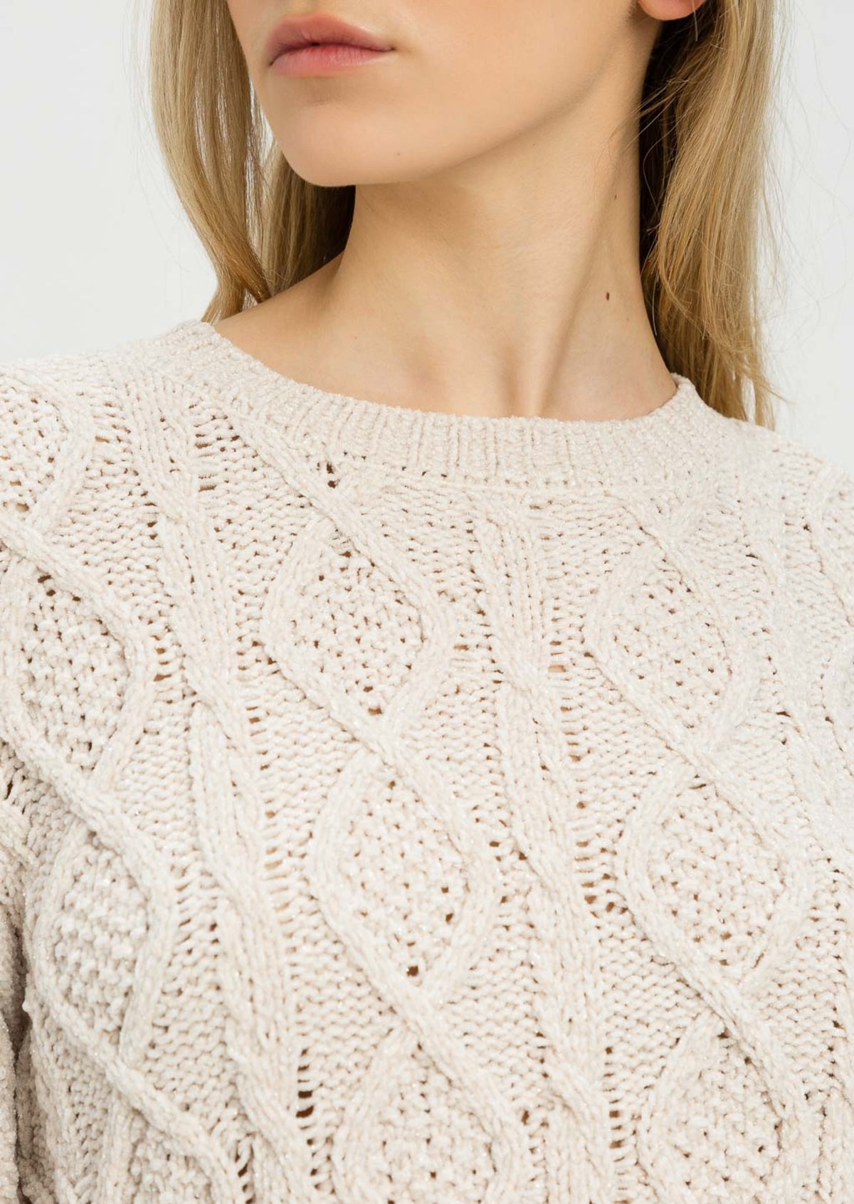 Twinset Maglia in Ciniglia Intrecciato Bianco