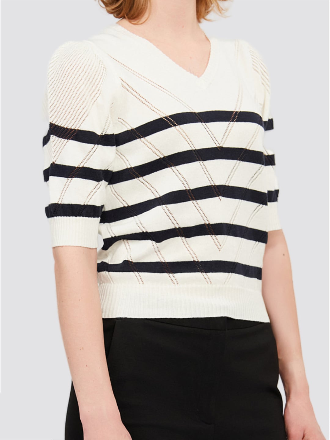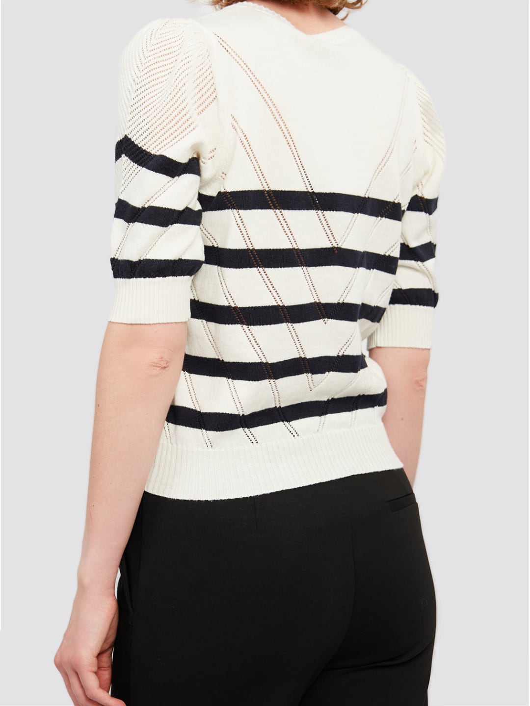 Twinset Maglia in cotone e cashmere a righe Riga Bianco "Neve" / Blue Night