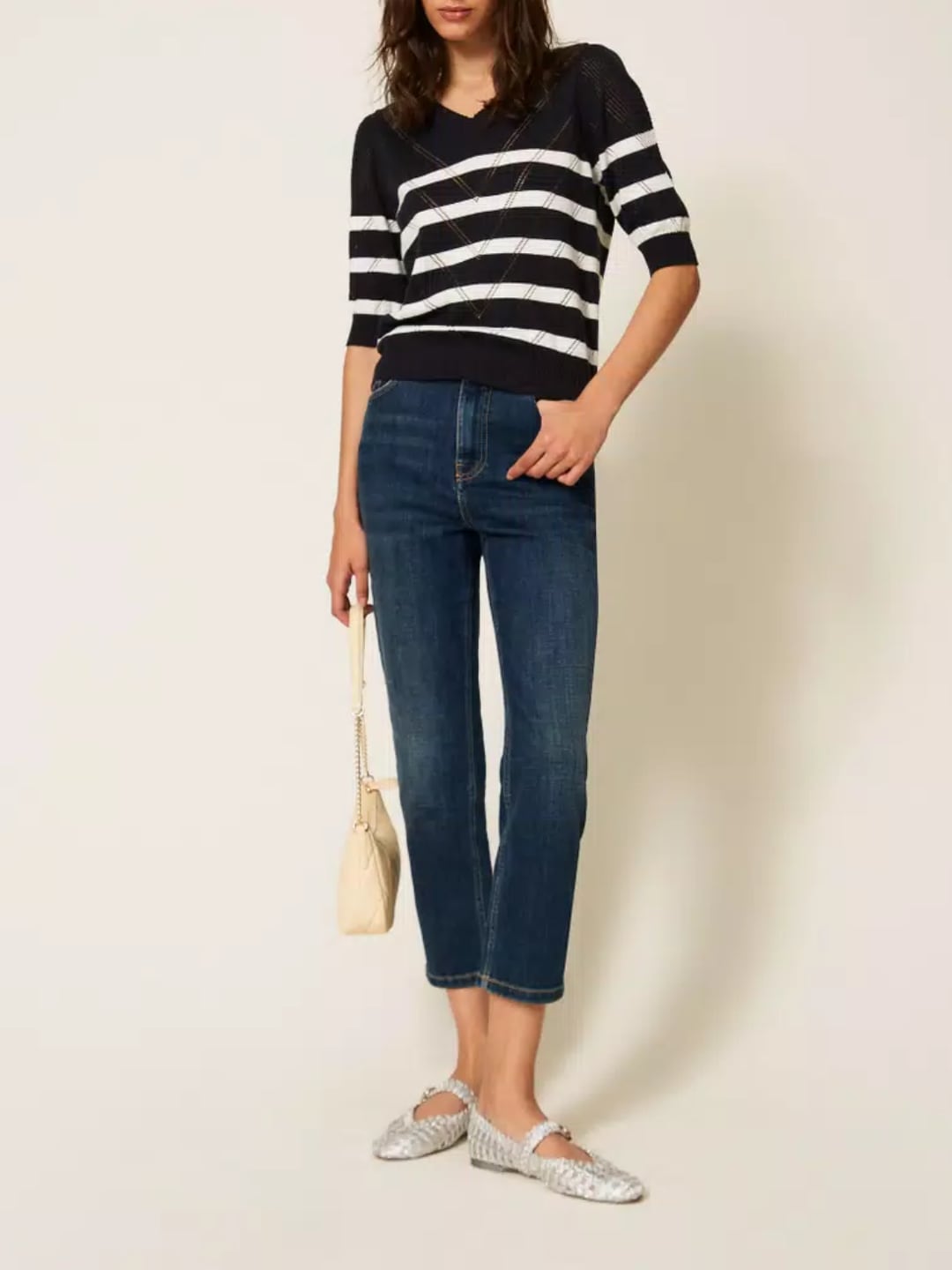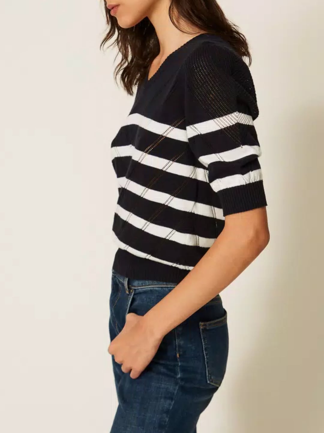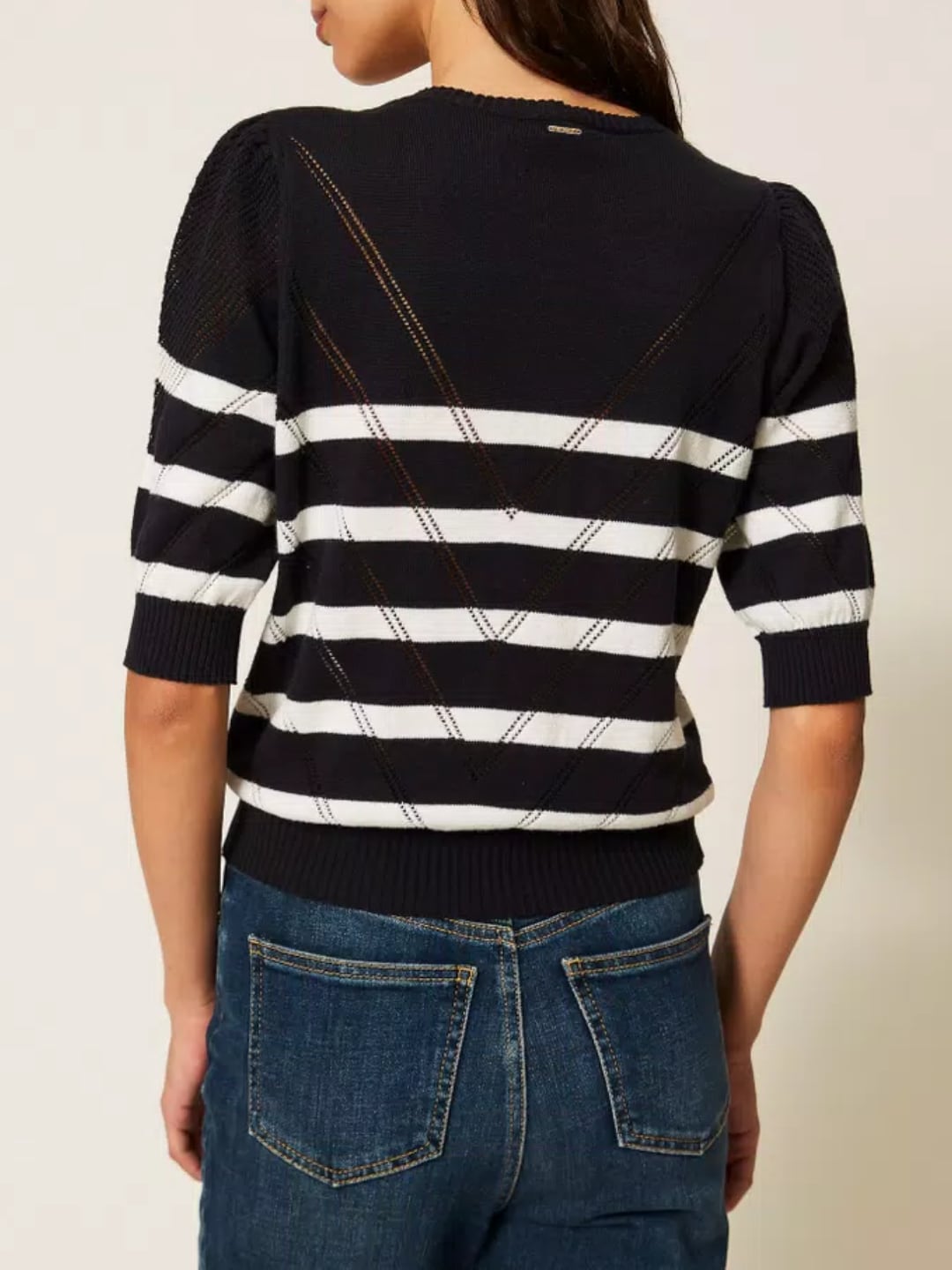 Twinset Maglia in cotone e cashmere a righe Riga Blue Night / Bianco "Neve"