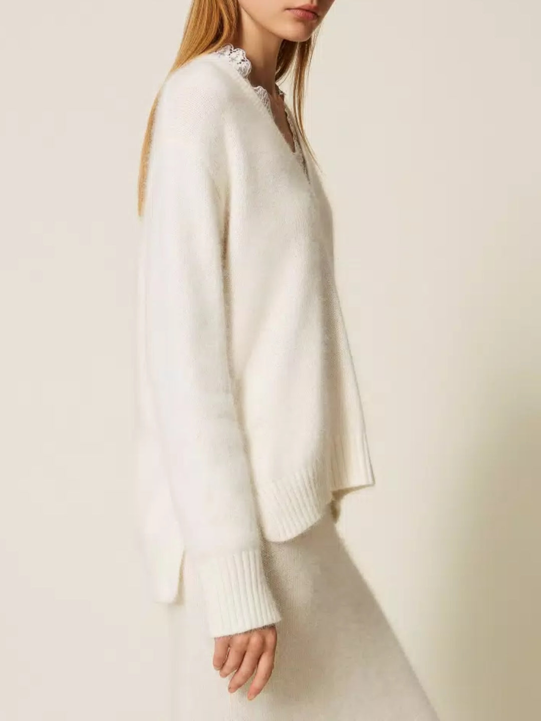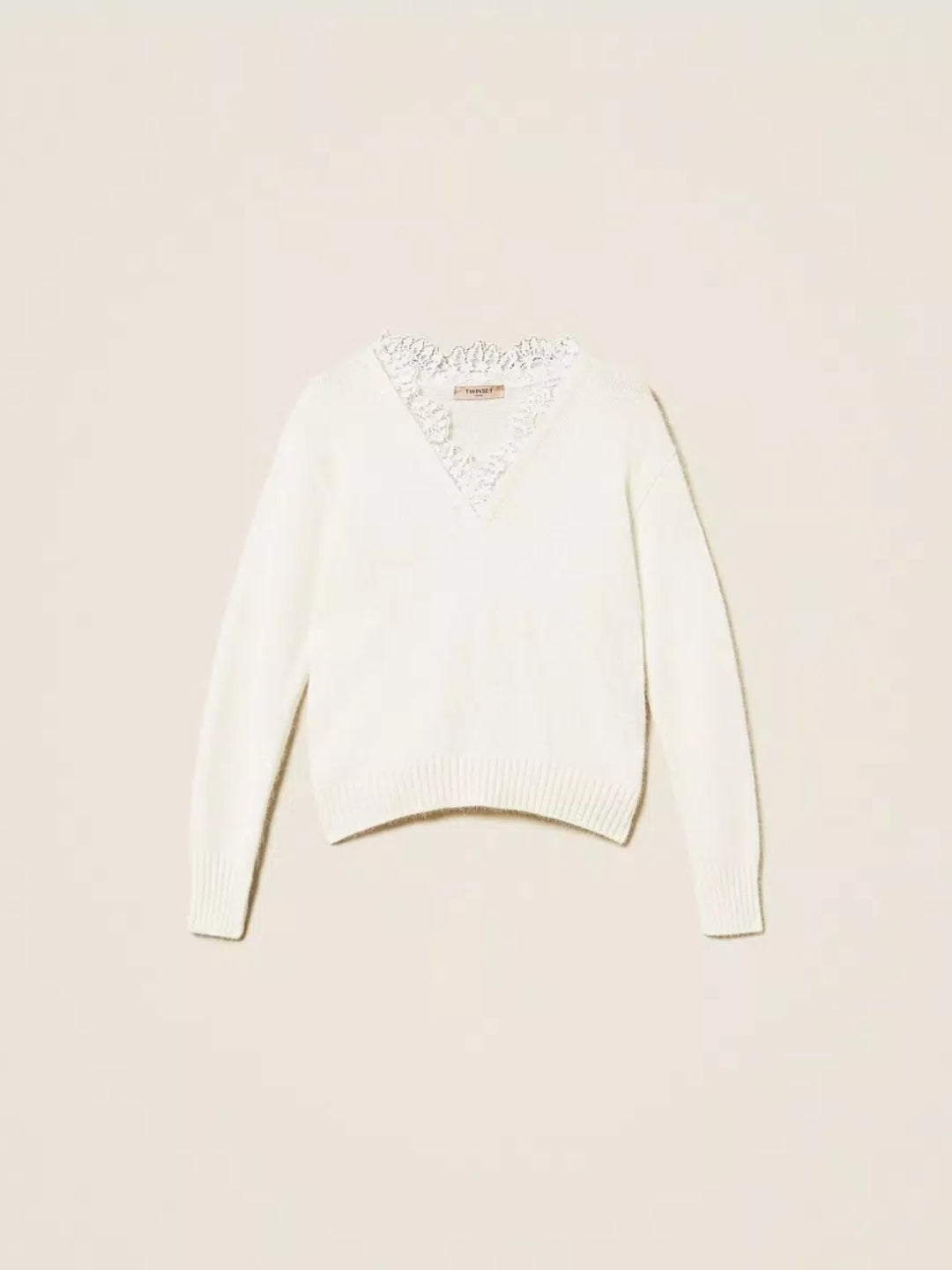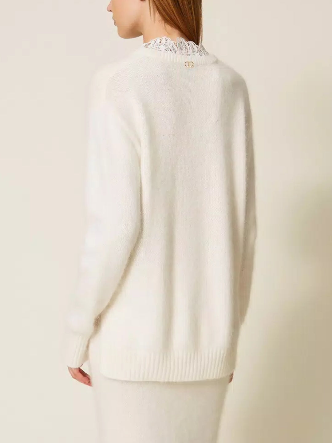 Twinset Maglia in misto angora con pizzo Bianco Neve