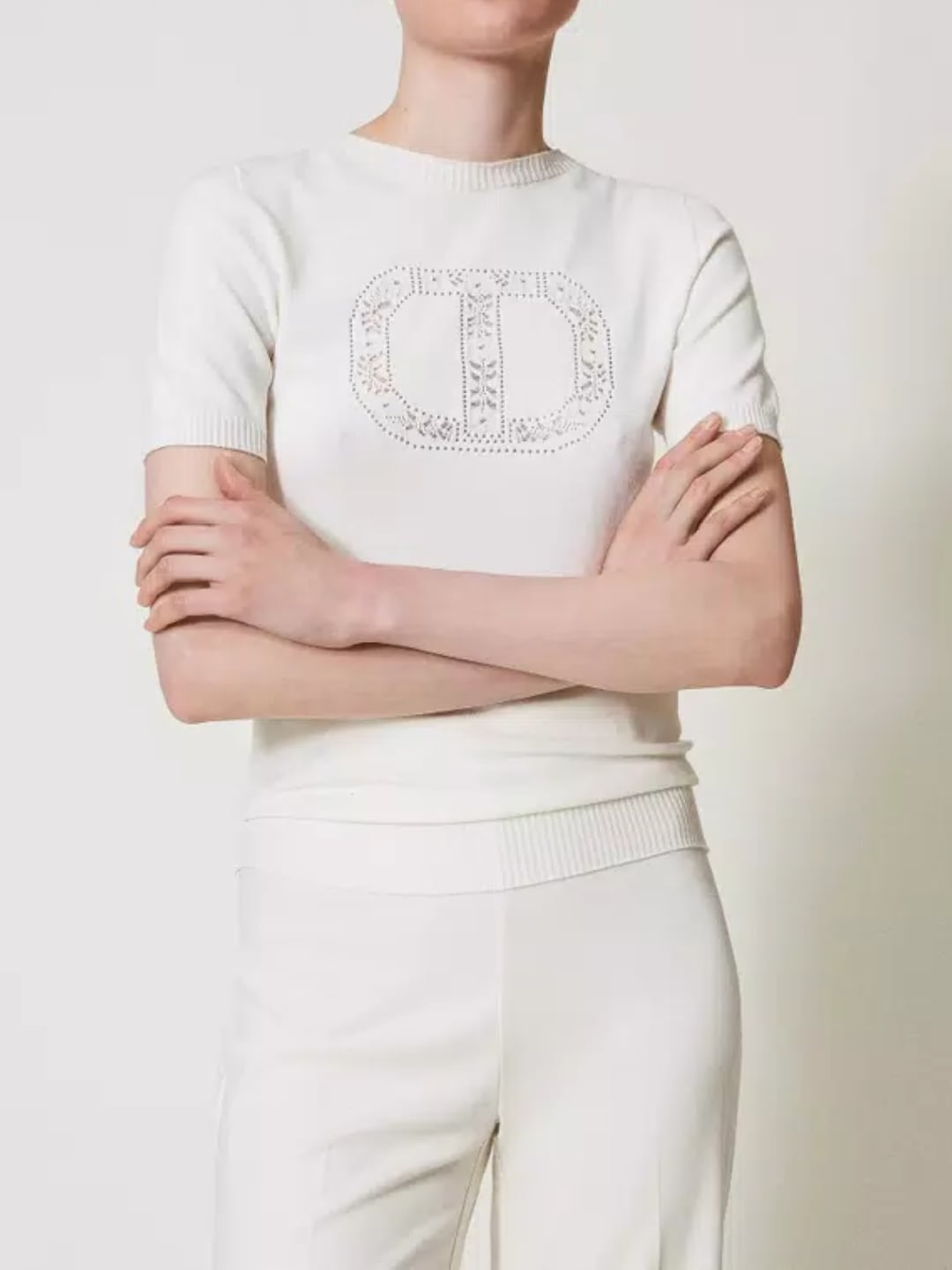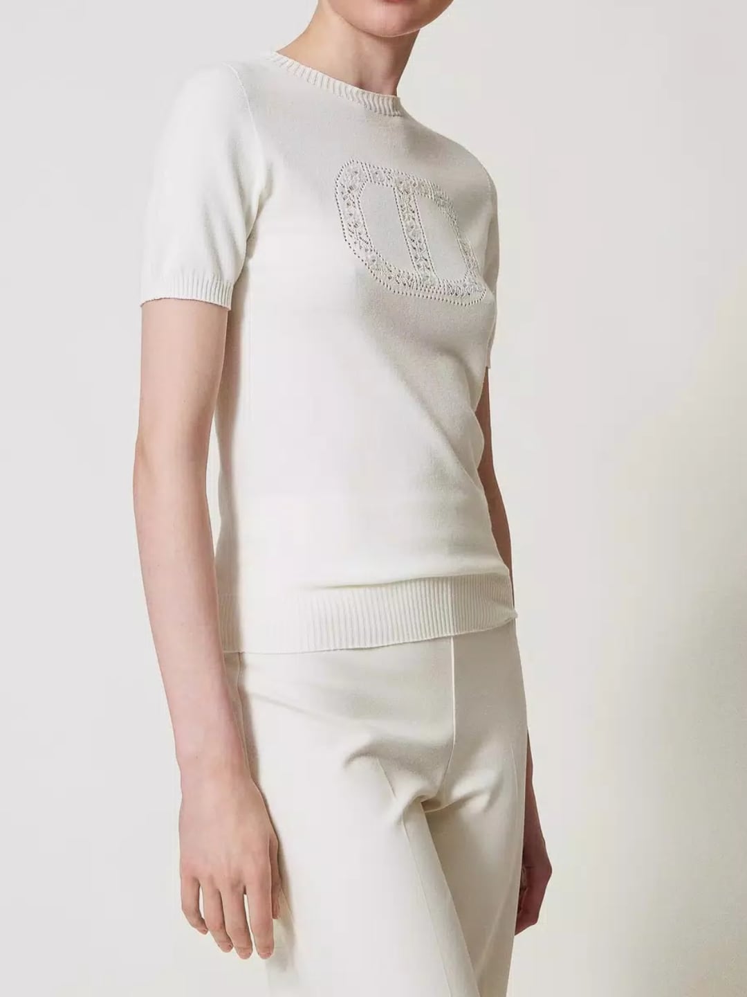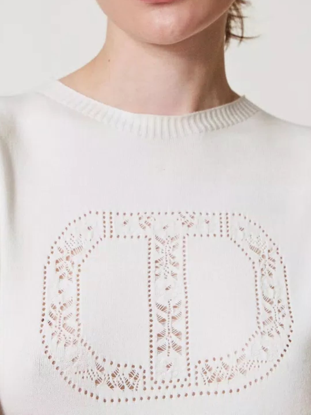 Twinset Maglia lupetto con logo Oval T Bianco Neve