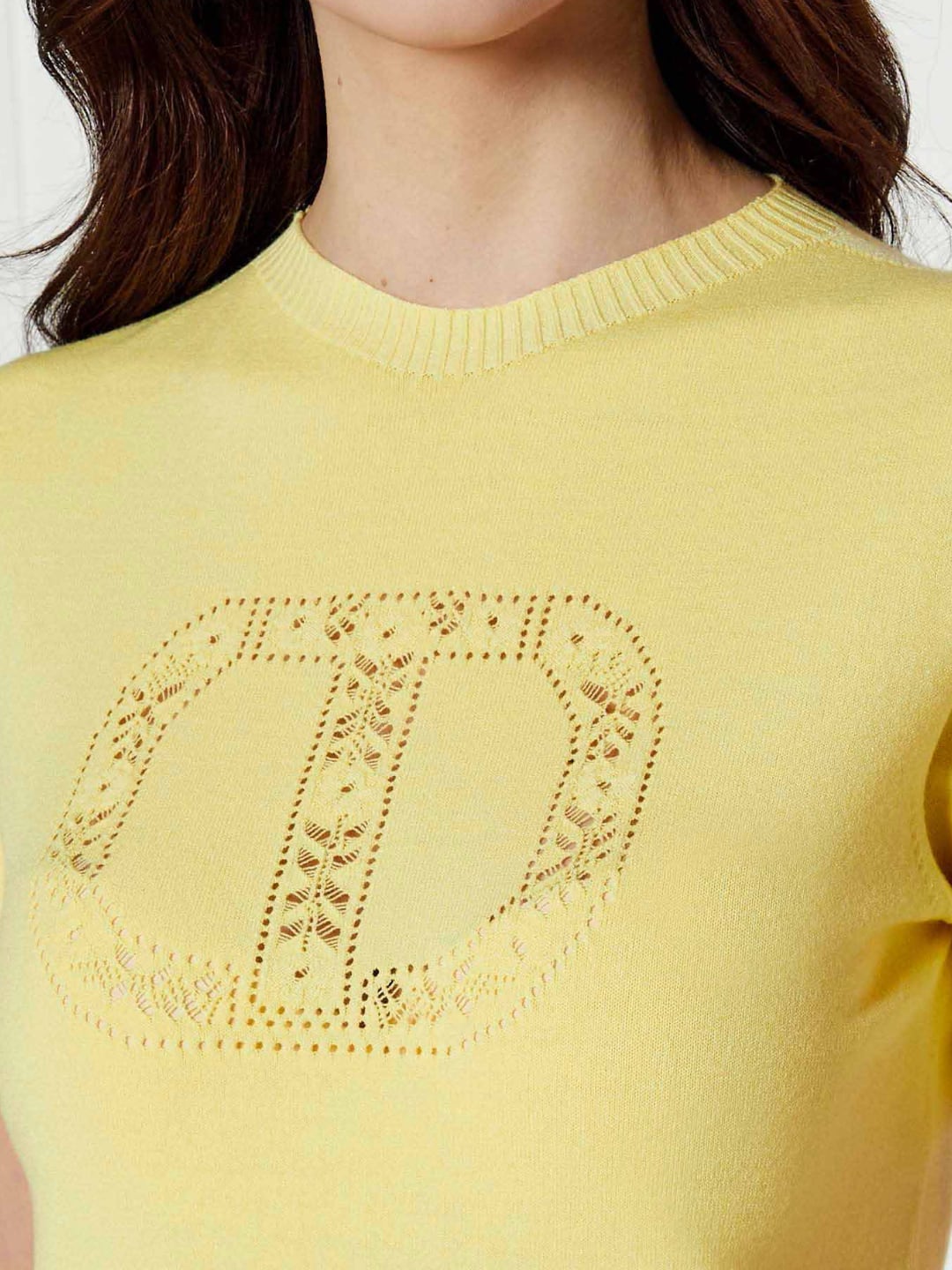 Twinset Maglia lupetto con logo Oval T Vanilla