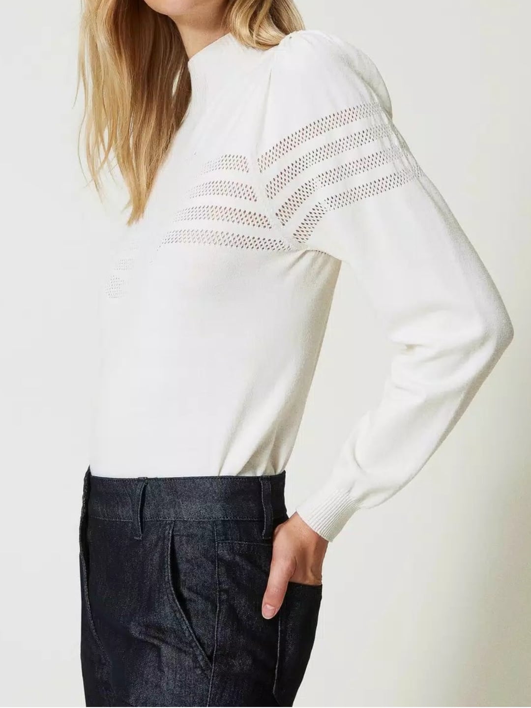 Twinset Milano Maglia Lupetto Con Lavorazione Oval T Neve
