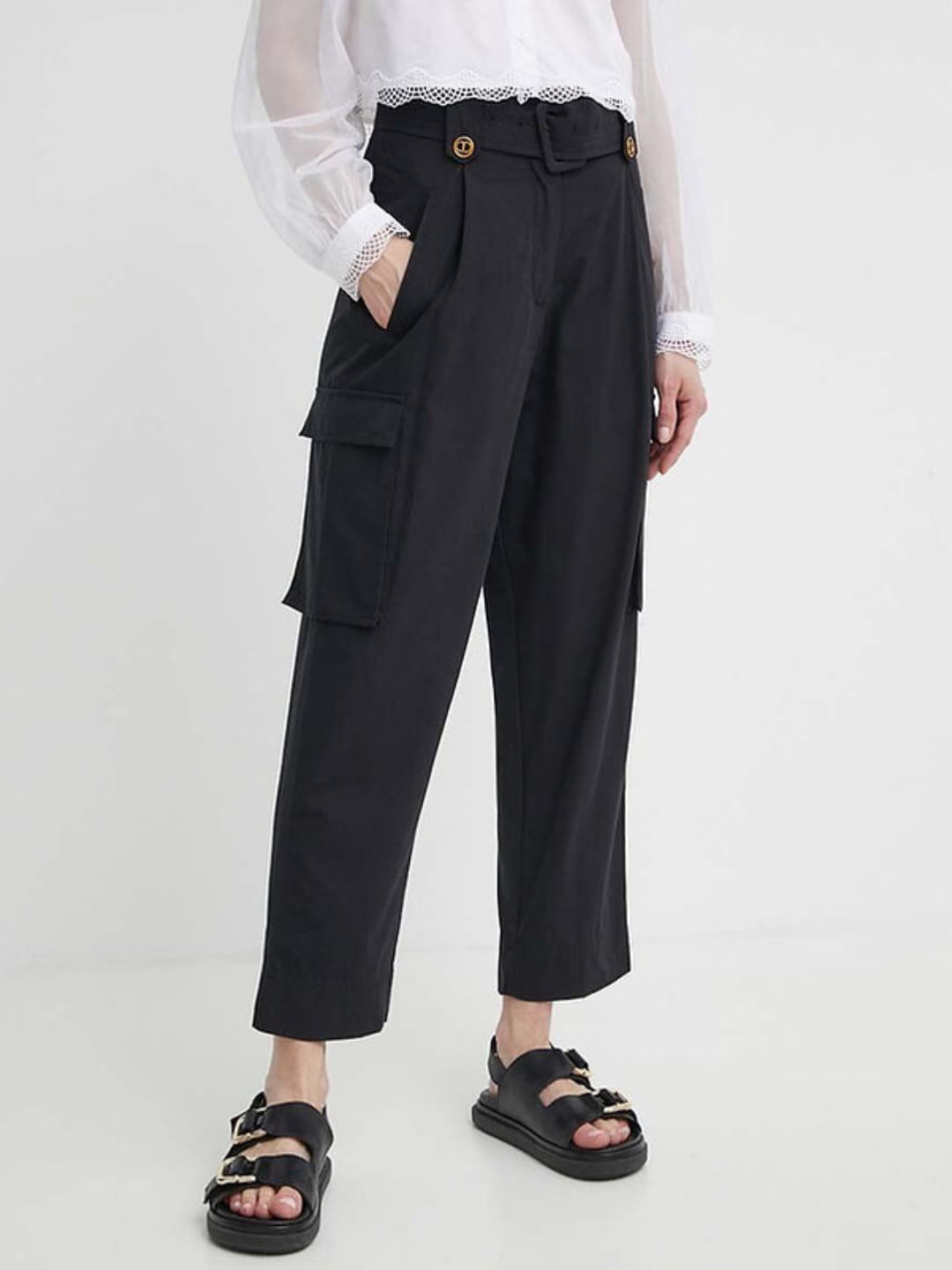 Twinset Pantaloni cargo in popeline Nero