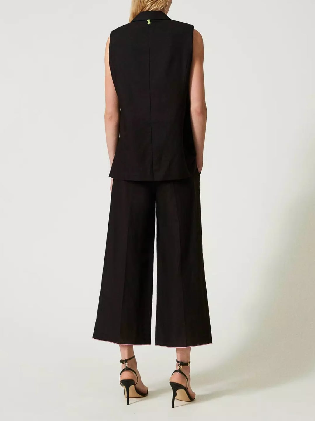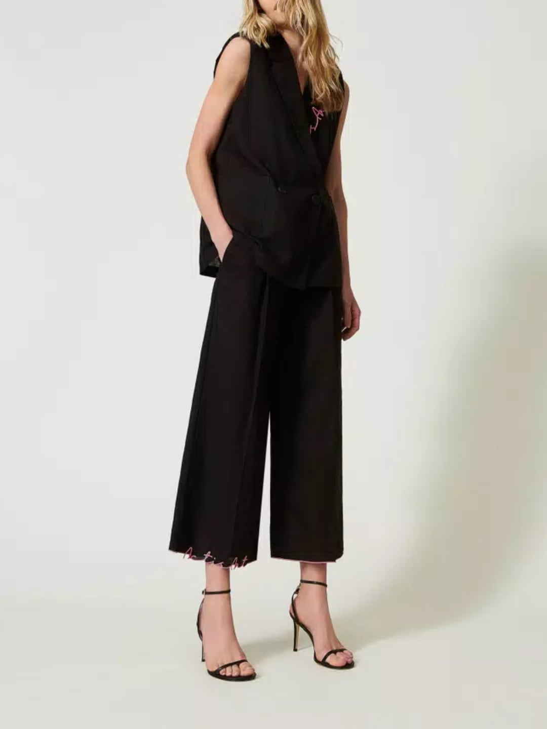 Twinset Pantaloni cropped MYFO in misto lino ricamato Nero