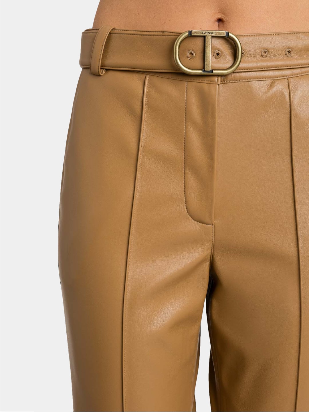 Twinset Pantaloni effetto pelle con cinta Sandy Brown
