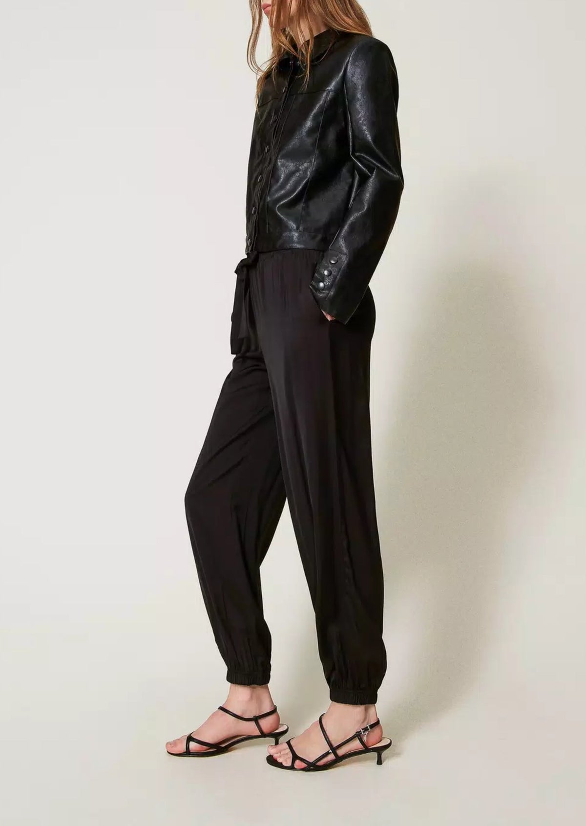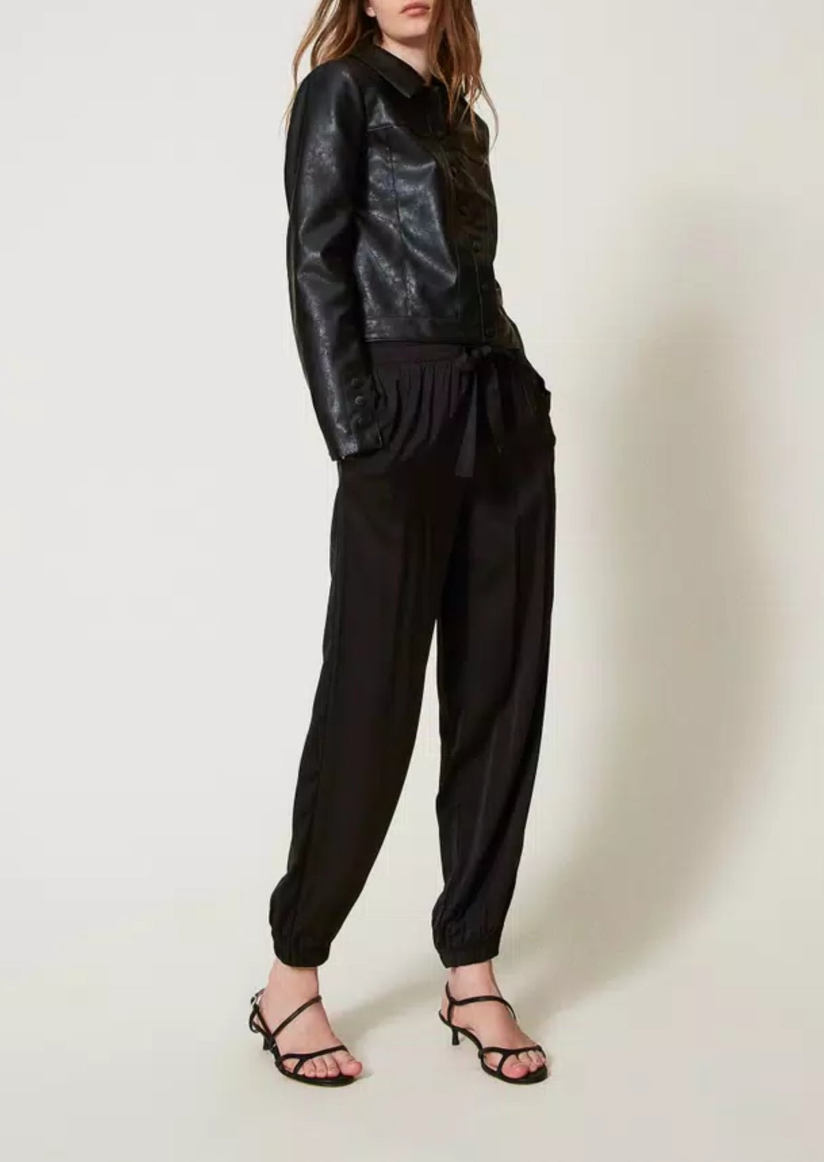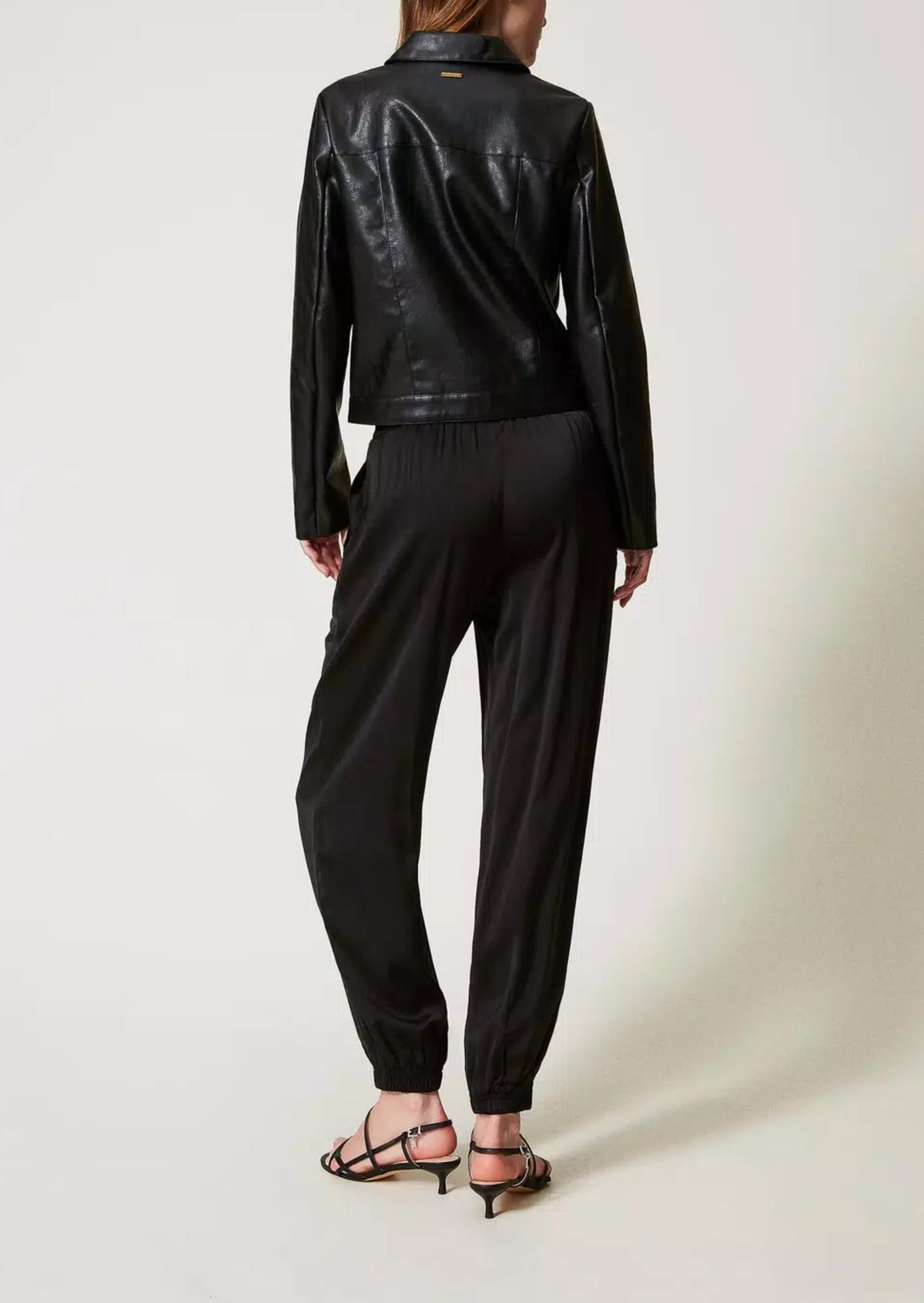 Twinset Pantaloni joggers in raso Nero