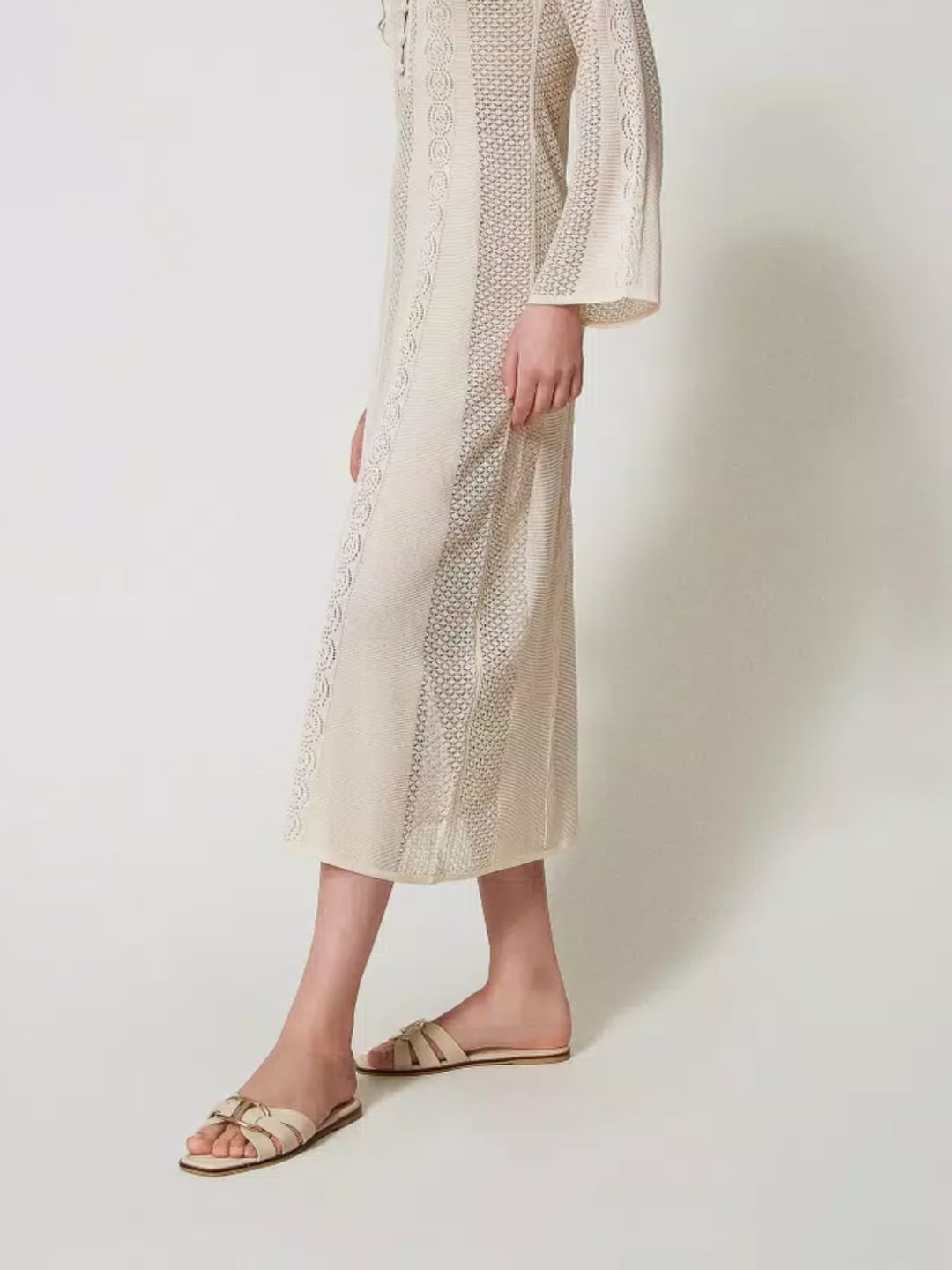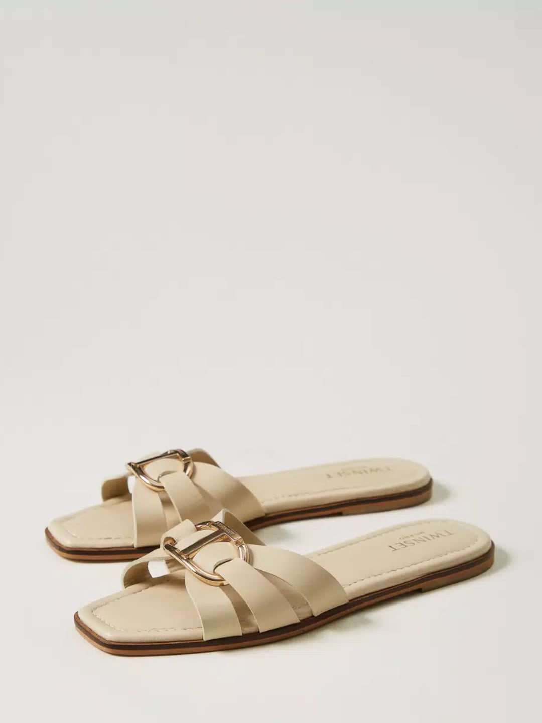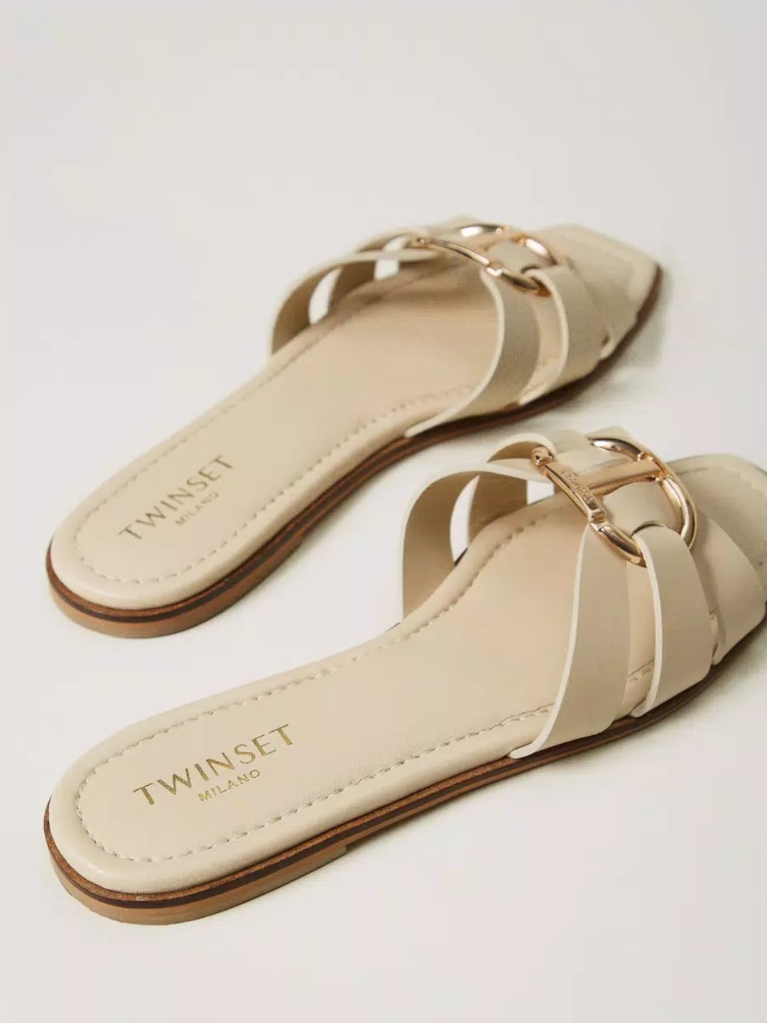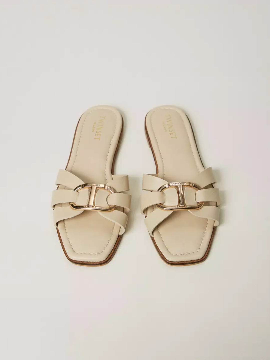 Twinset Sandali slide in pelle con Oval T Beige Chiaro