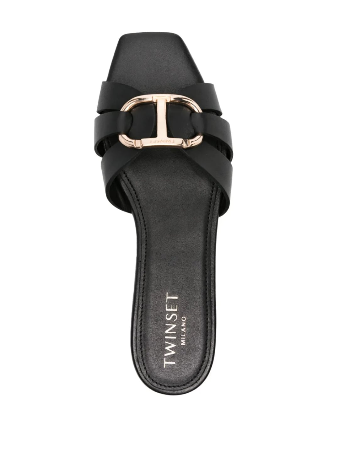 Twinset Sandali slide in pelle con Oval T Nero