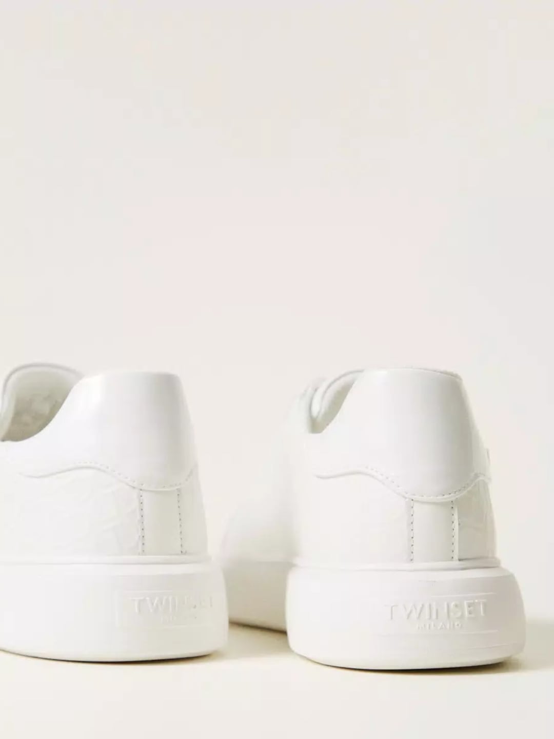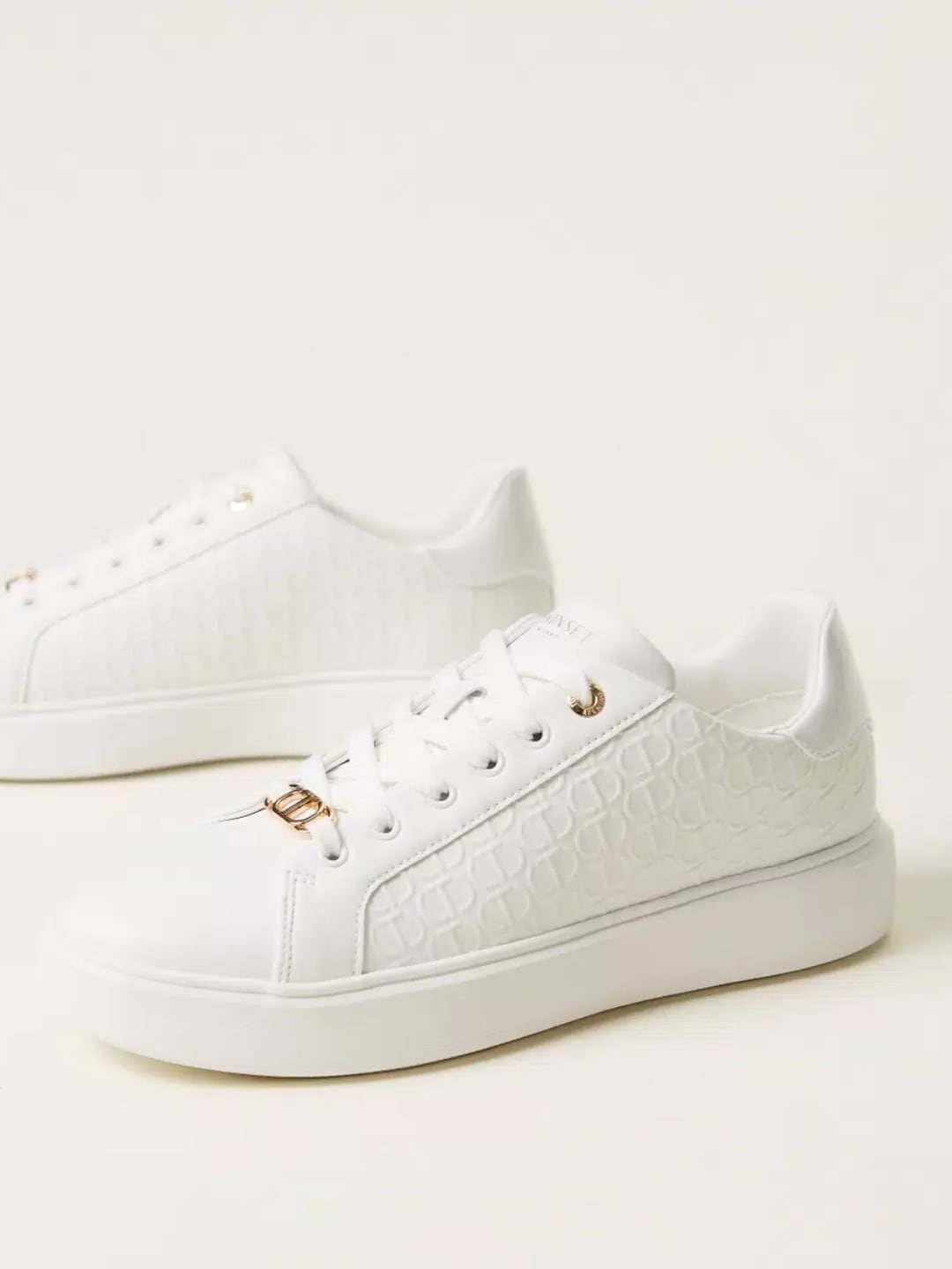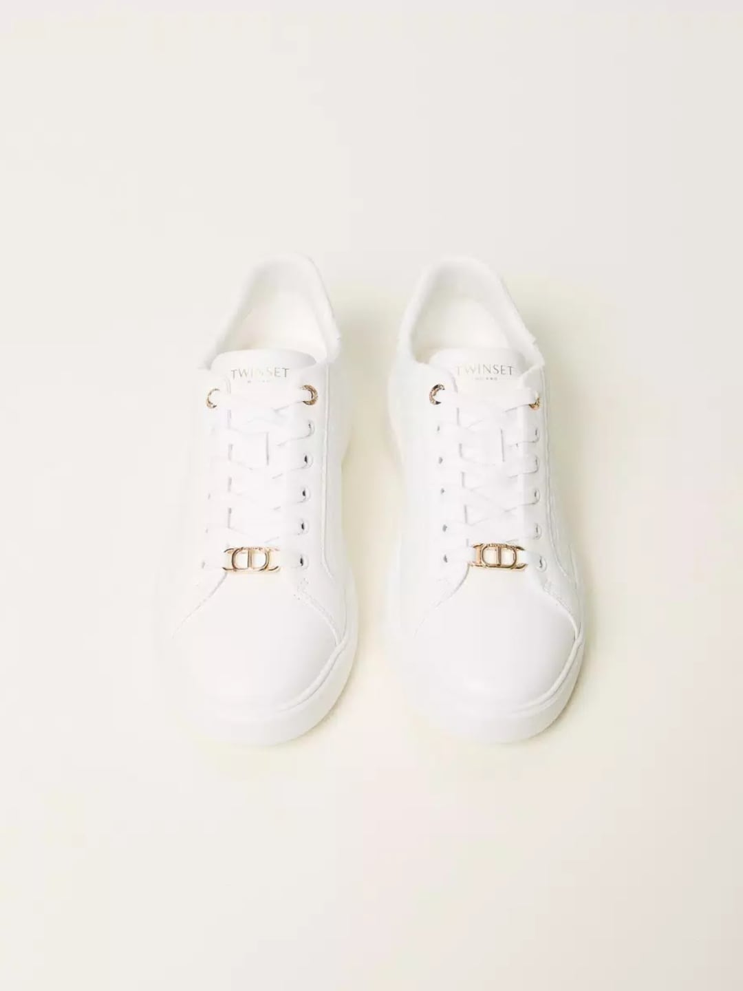 Twinset Sneakers in pelle con logo Bianco Ottico
