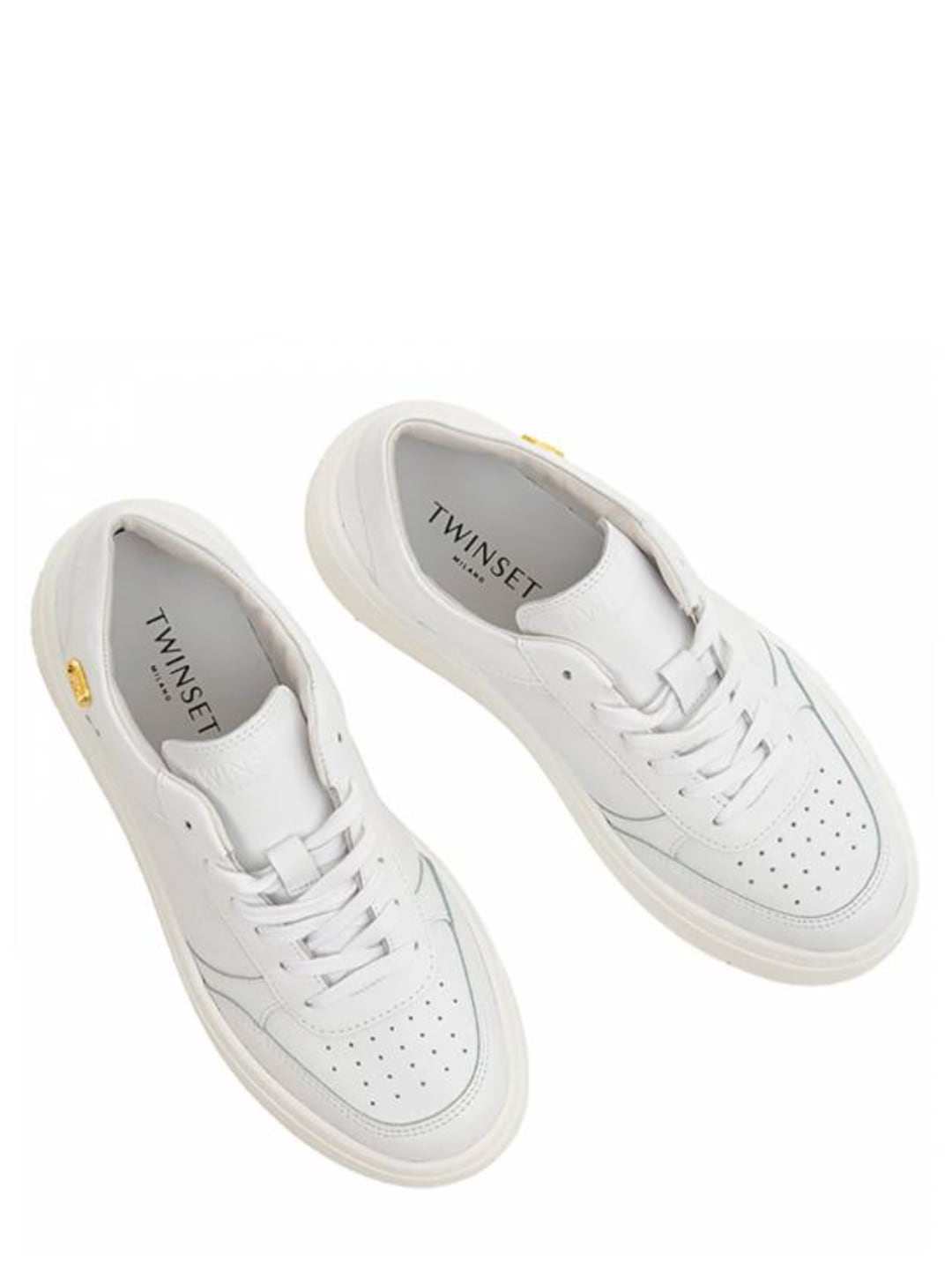 Twinset Sneakers platform in pelle con logo Bianco Ottico