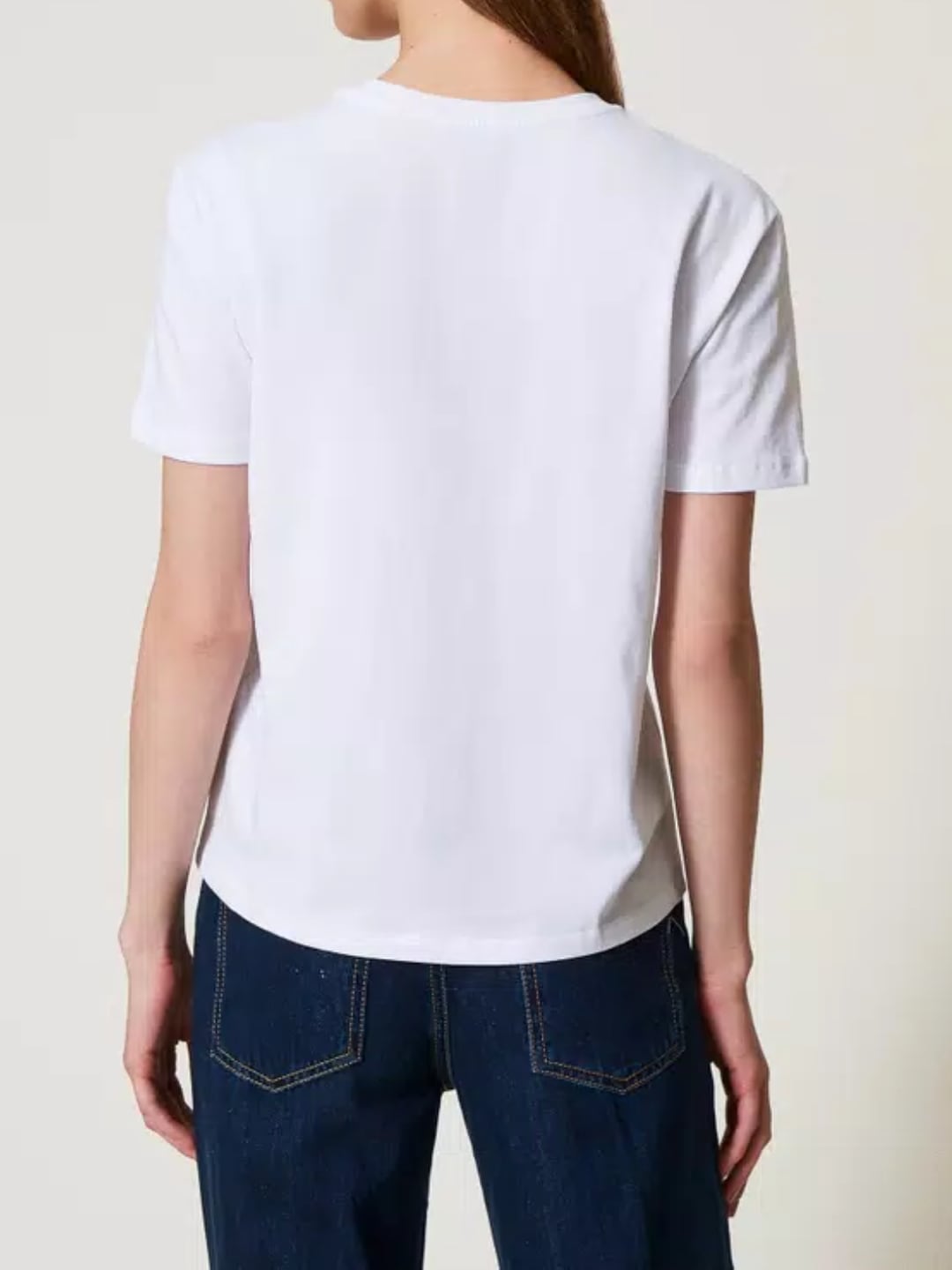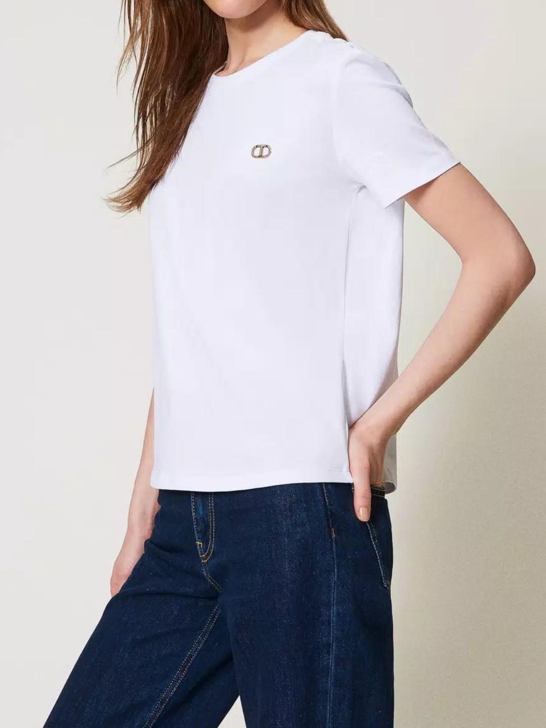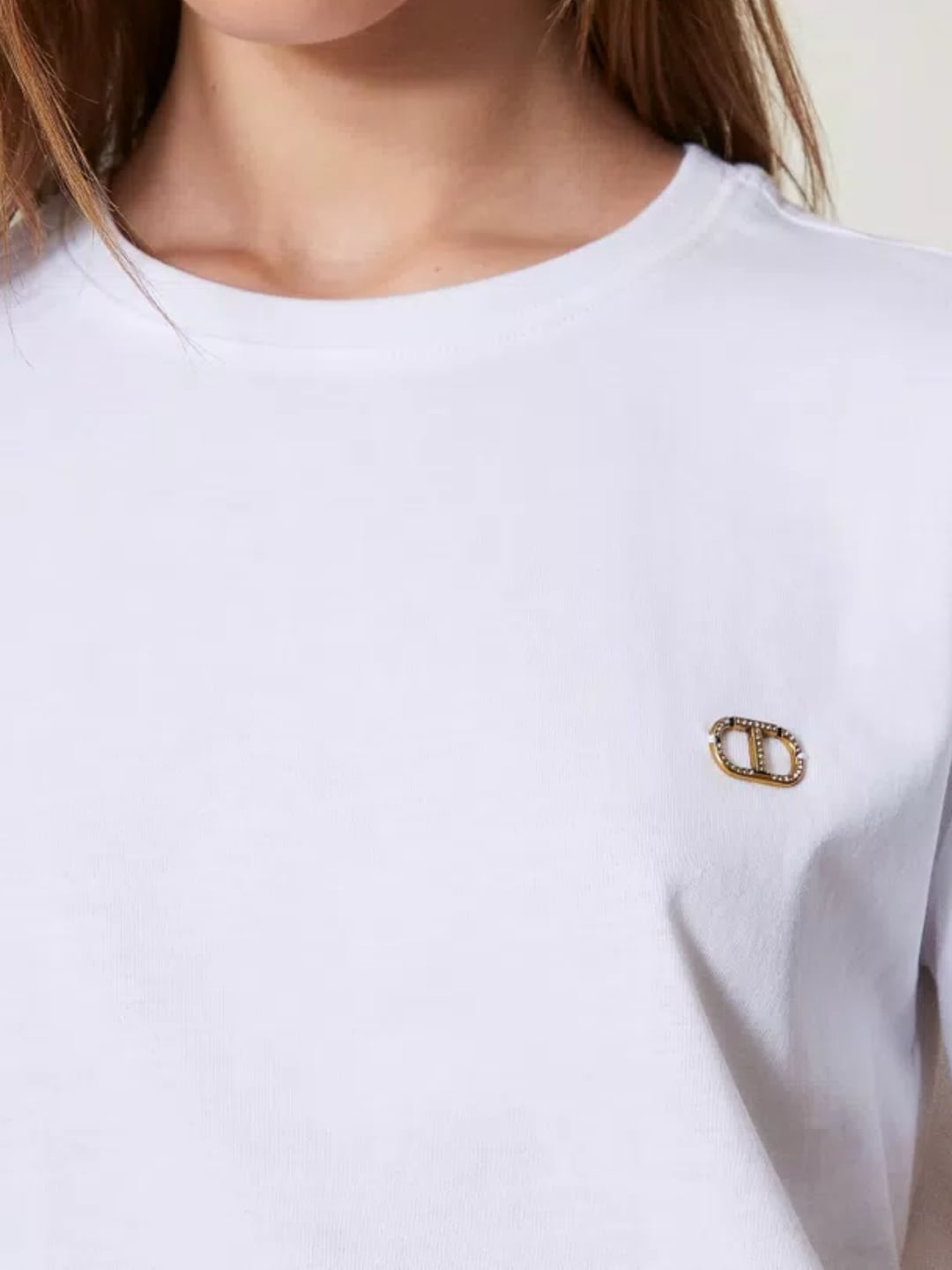 Twinset T-shirt con placchetta Oval T strass Bianco