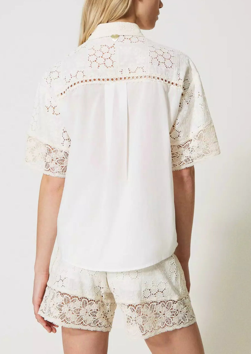 Twinset Camicia in popeline con ricami sangallo e pizzo Bianco