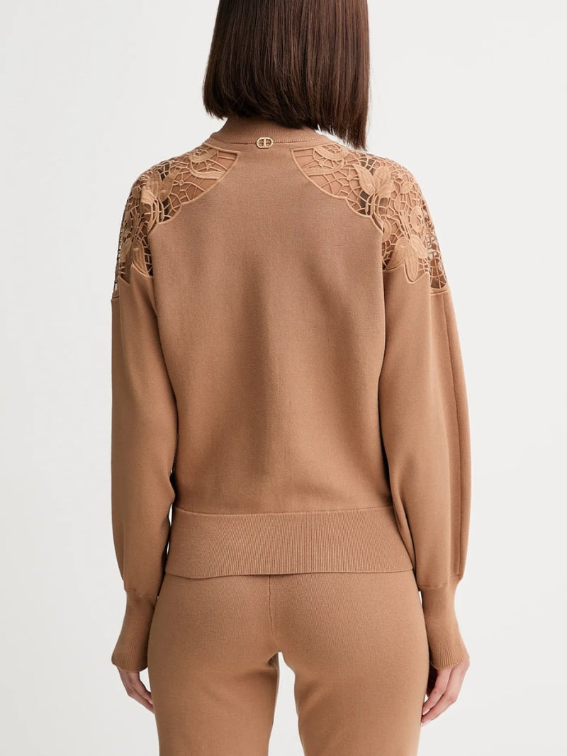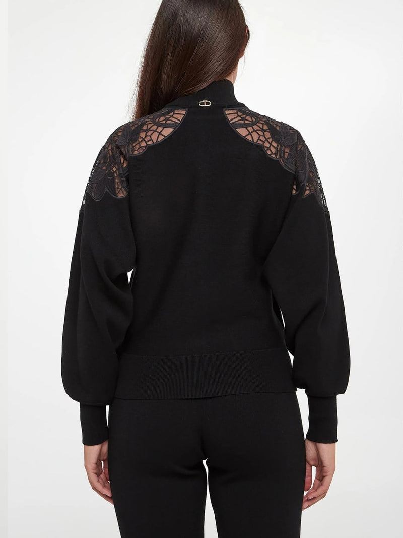 Twinset Maglia in misto mohair con pizzo e spacchi Riga Grigio Melange / Bianco "Neve"