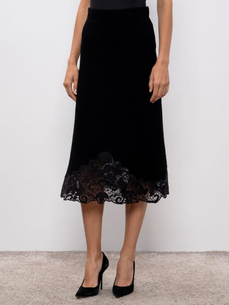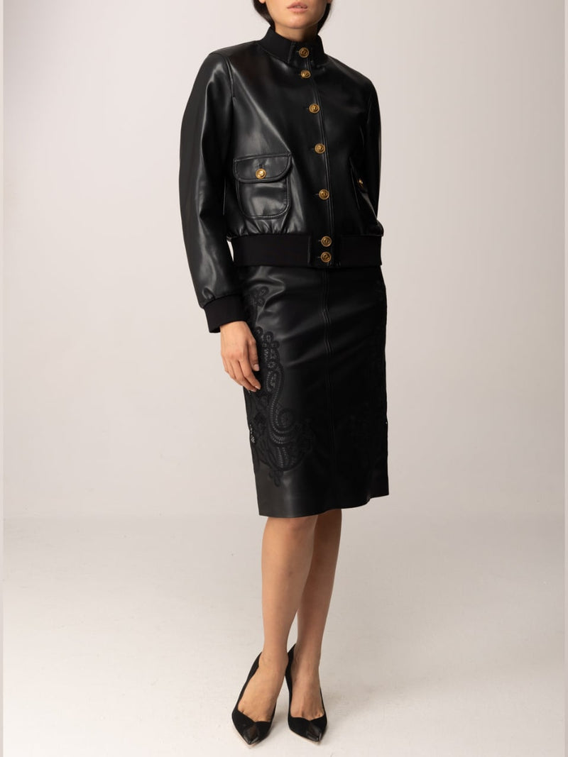 Twinset Gonna In Ecopelle con Ricamo Nero