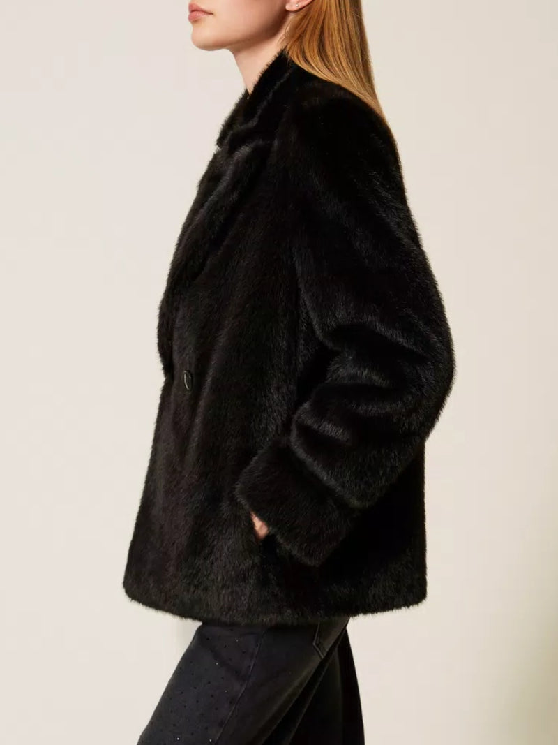 Twinset Cappotto Corto doppiopetto in Ecopelliccia Nero
