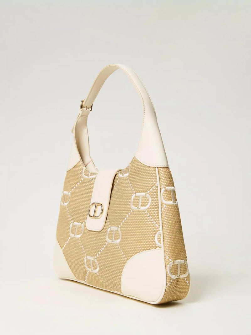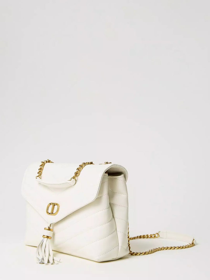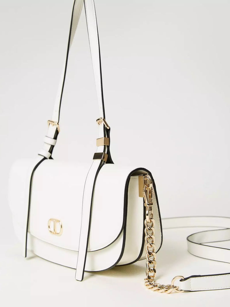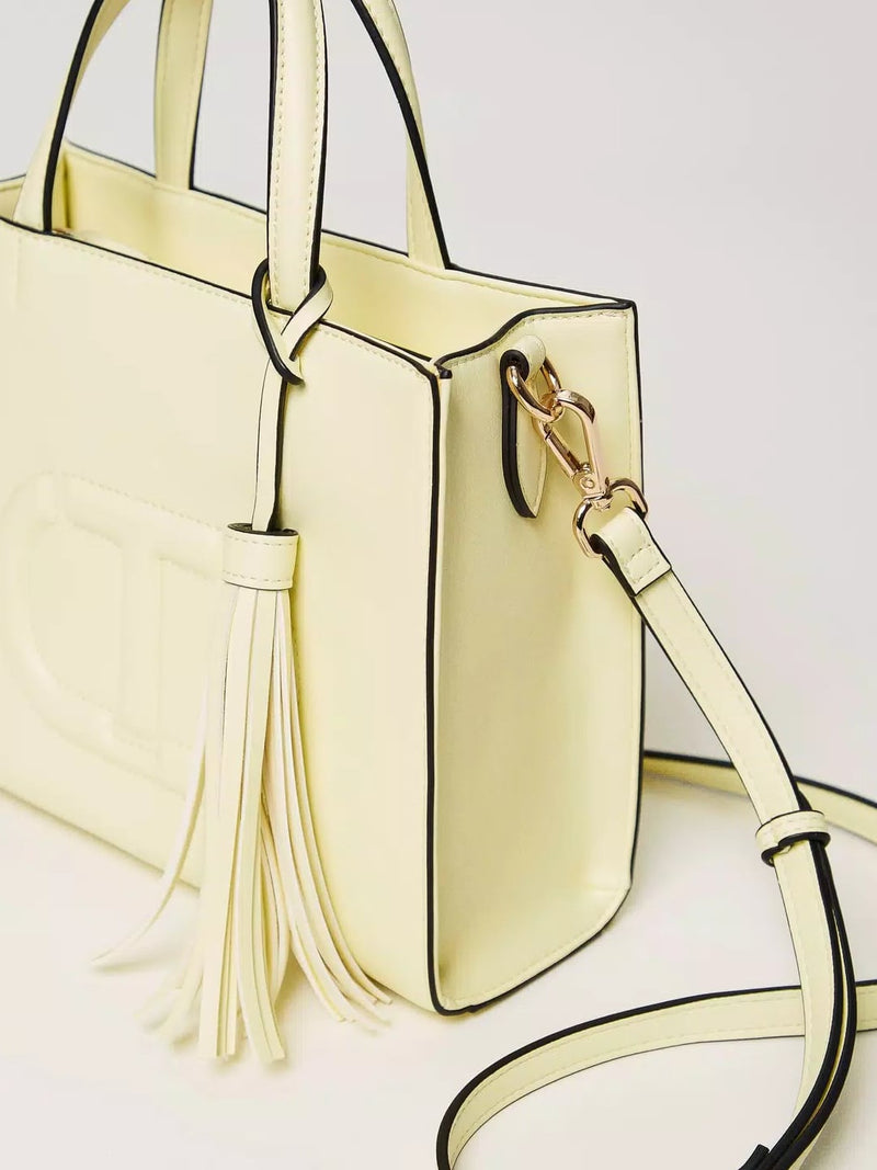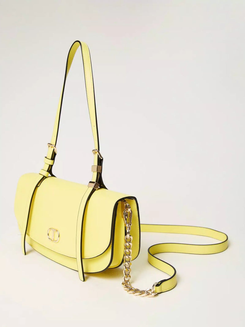 Borsa a tracolla con patta e Oval T Giallo Light Lemon