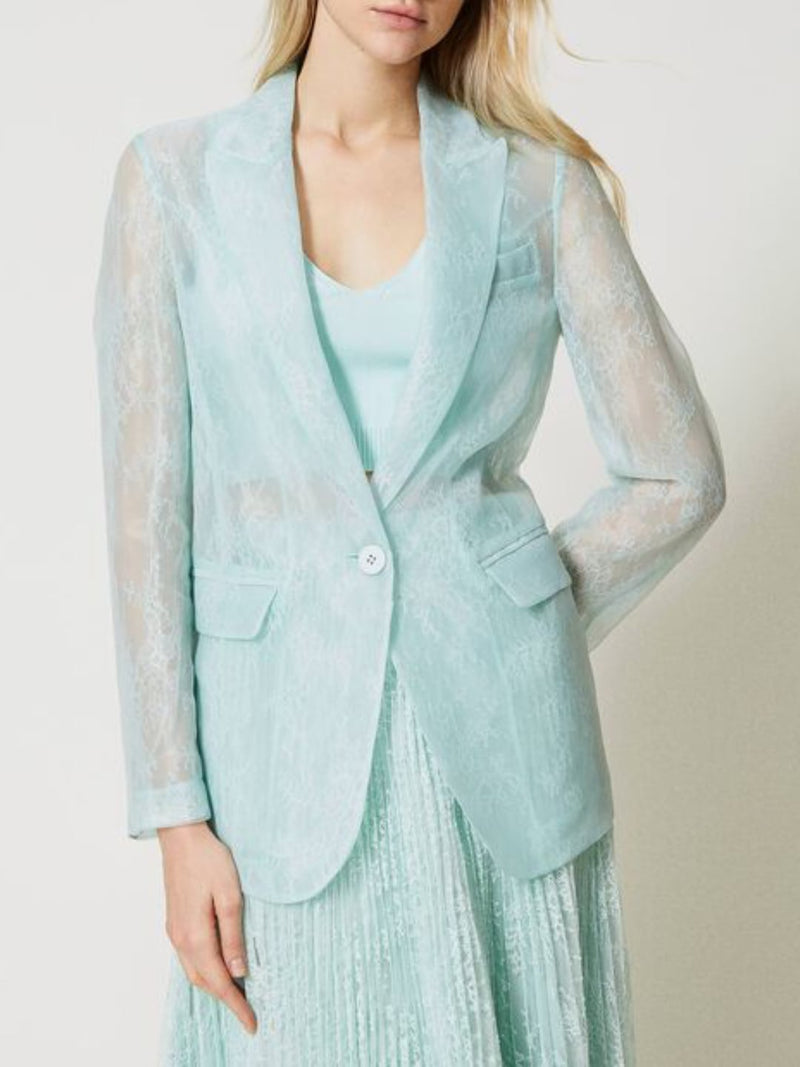 Twinset Giacca blazer in organza e pizzo Verde Agave