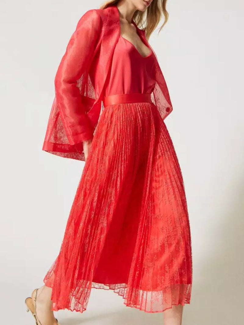 Twinset Gonna lunga in pizzo plissé Rosa Azalea