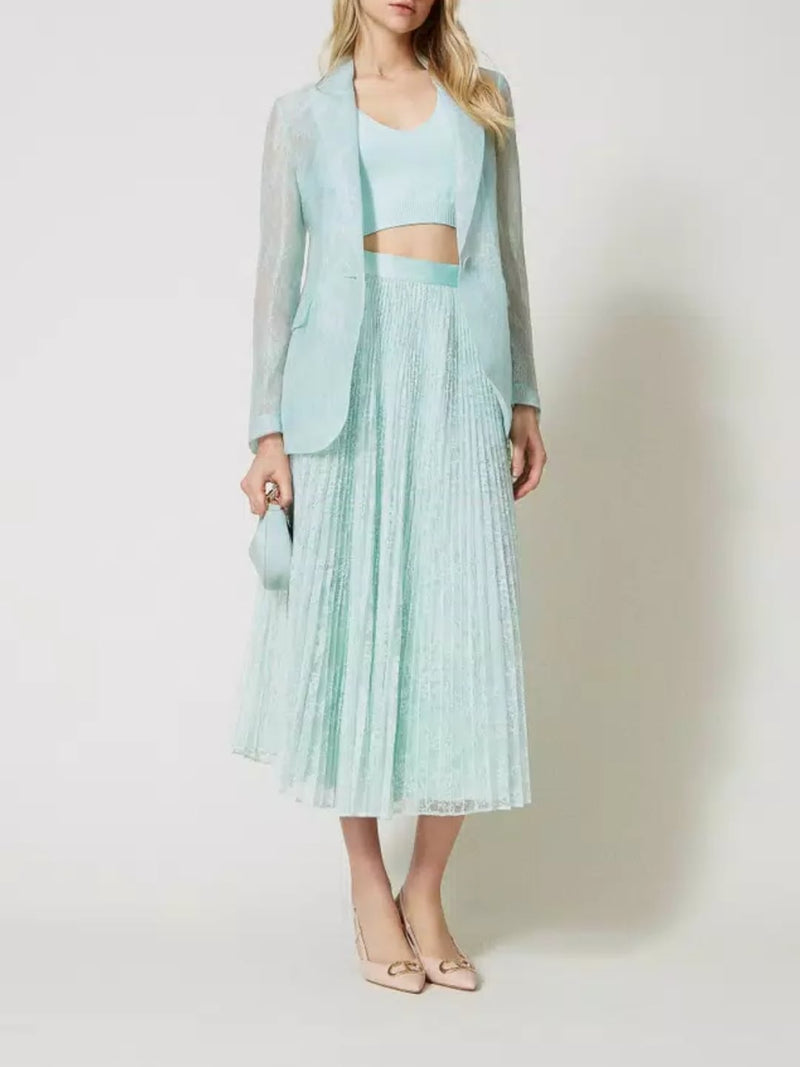Twinset Gonna lunga in pizzo plissé Verde Agave