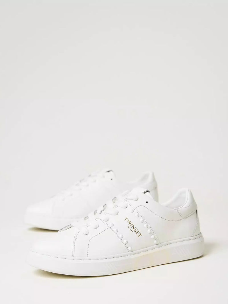 Sneakers in pelle con borchie Col. Bianco Ottico